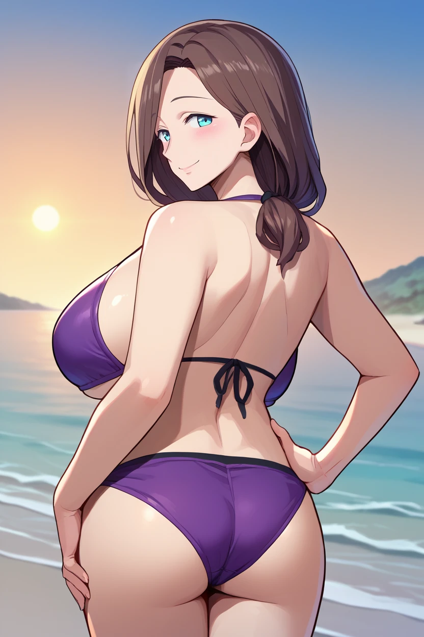 aimom, brown hair, blue eyes, hair over shoulder, mature female