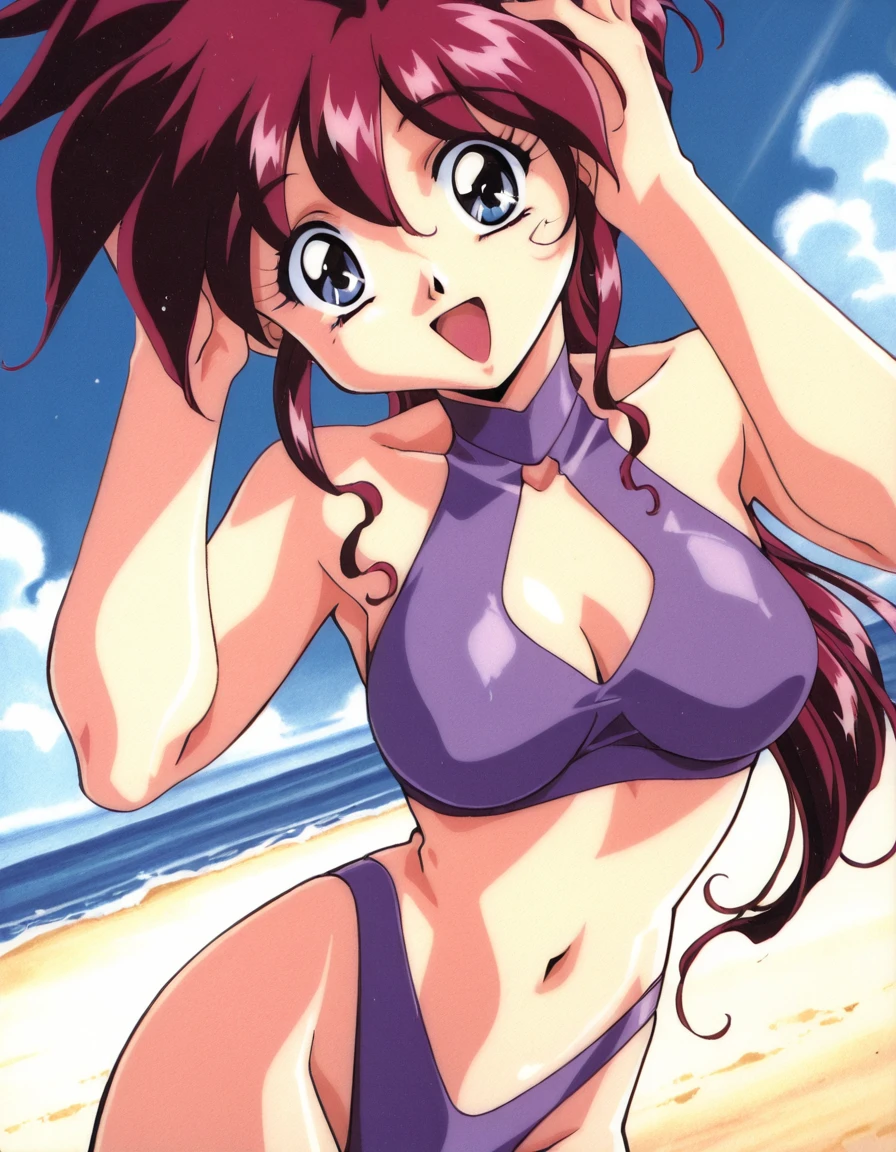 chocolate misu, long hair, red hair, bangs, blue eyes, medium ,