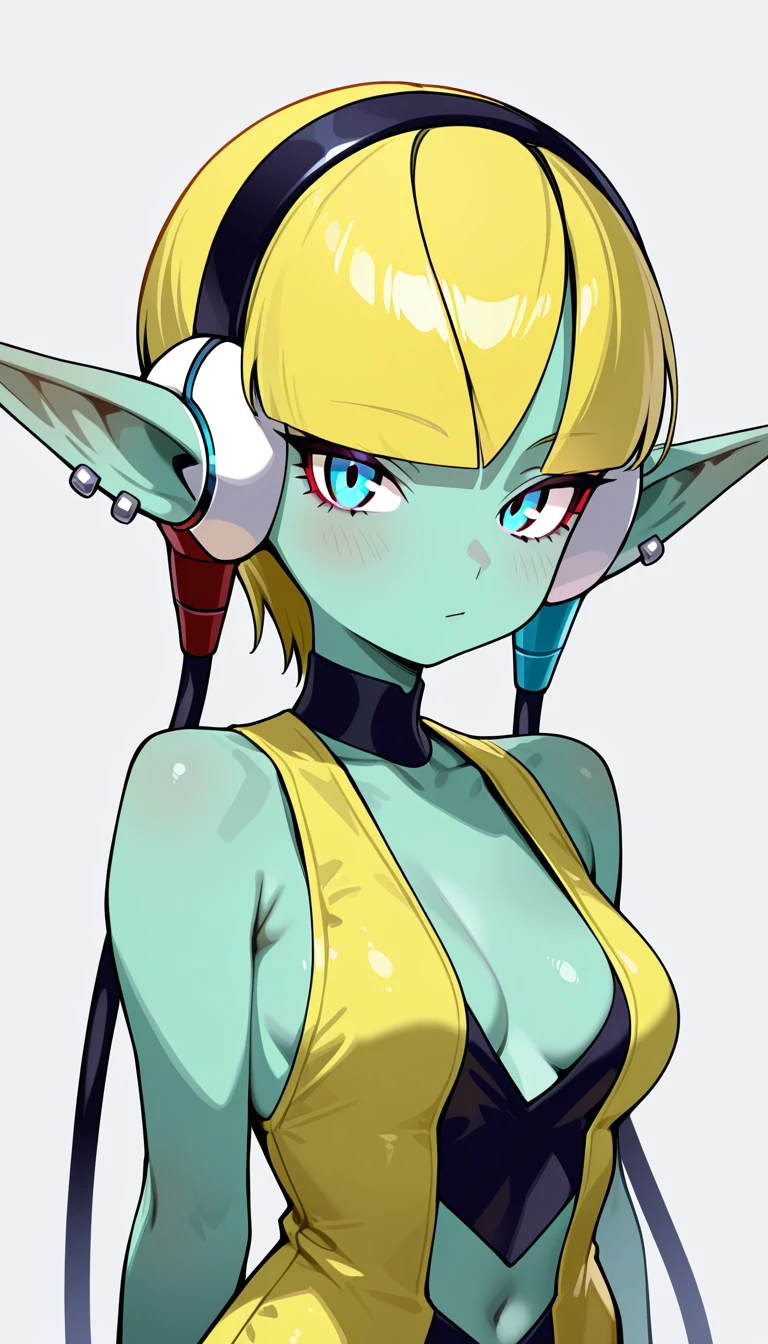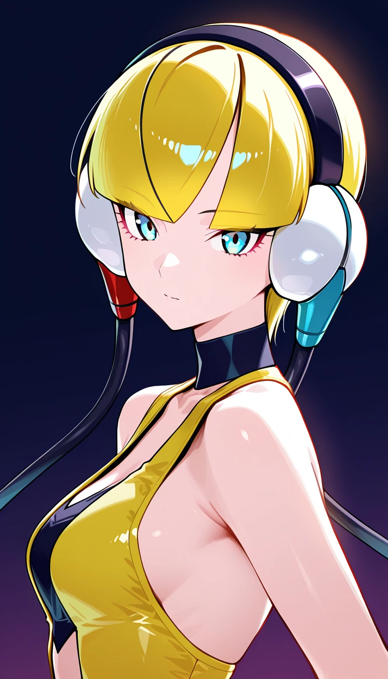 Prompts (Black): elesa, headphones, blue eyes, blonde hair, blunt bangs, short hair, outfit1
