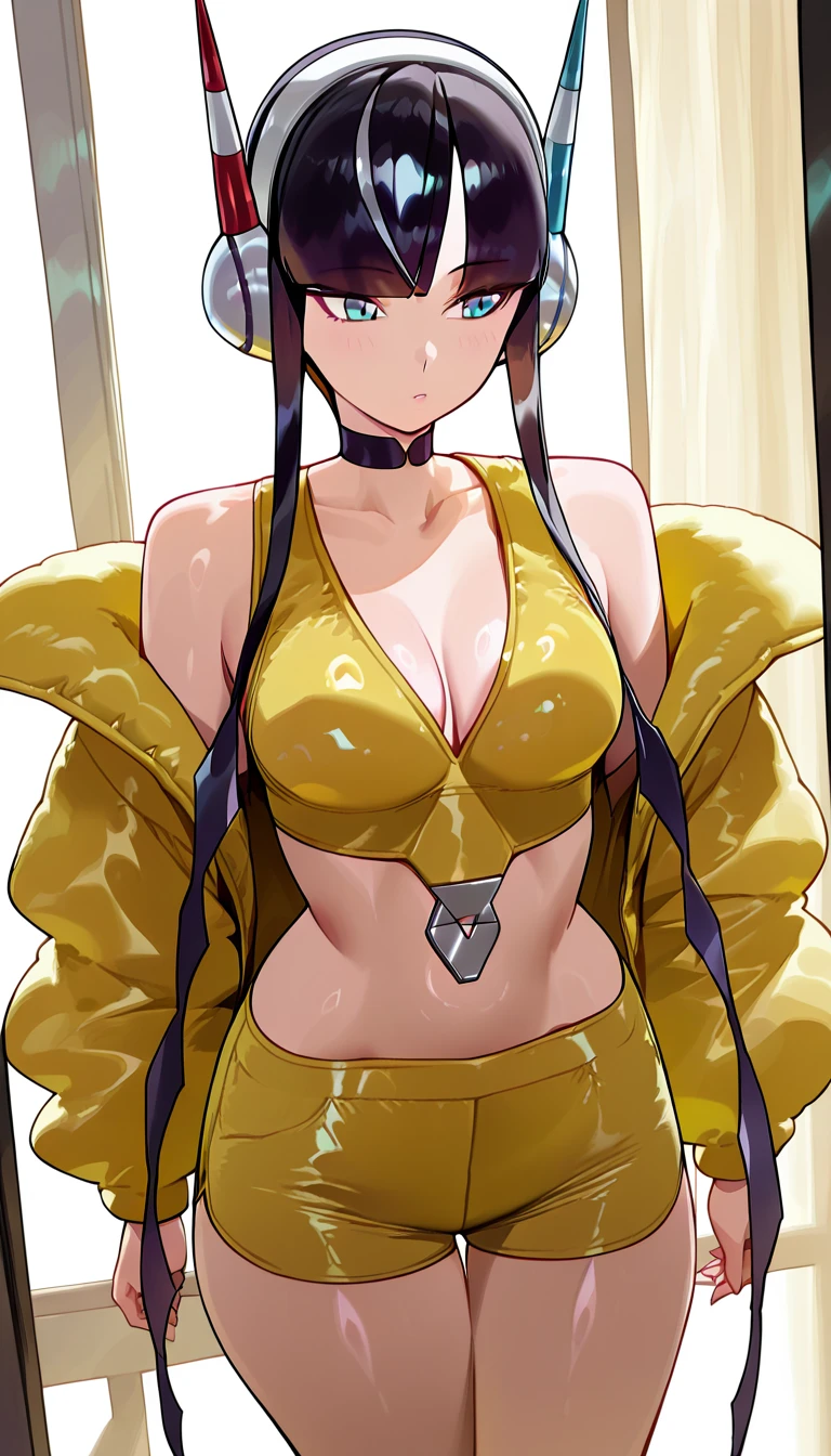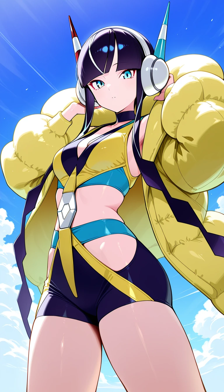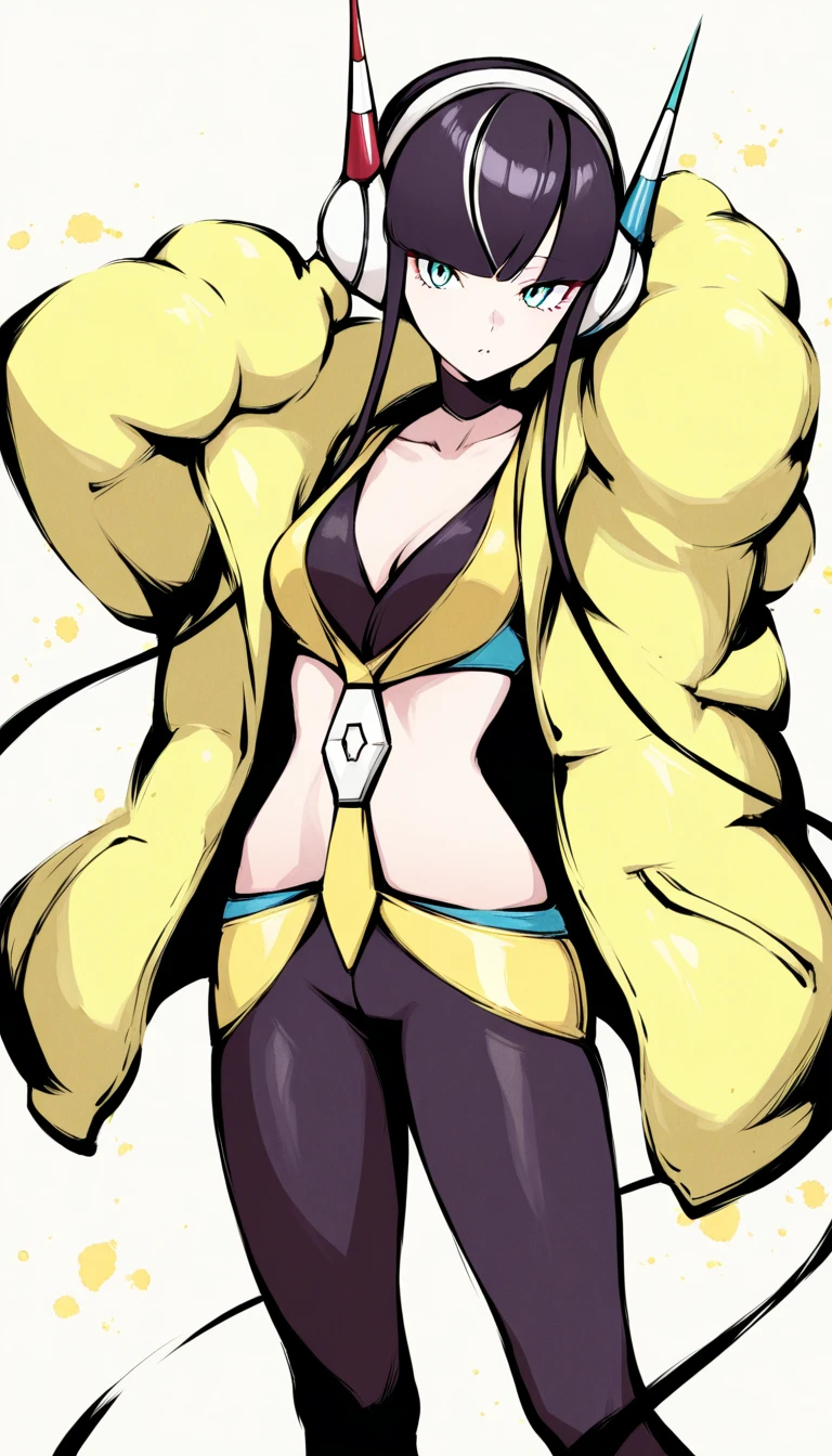 Black 2 Outfit: elesa, headphones, blue eyes, black hair, blunt bangs, short hair, outfit2, jacket,