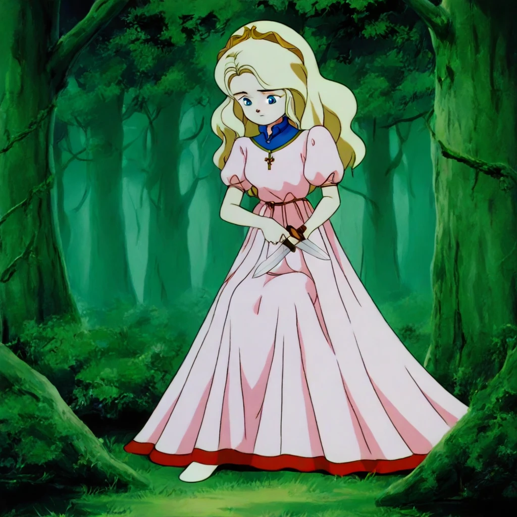 First marion, pink dress, long hair, tiara, puff sleeves