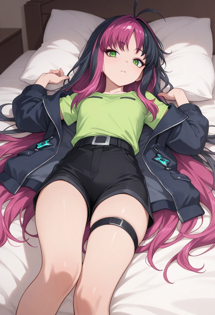 Trigger Words: sinclair hina (shadowverse flame), long hair, purple hair, black hair, multicolored hair, green eyes