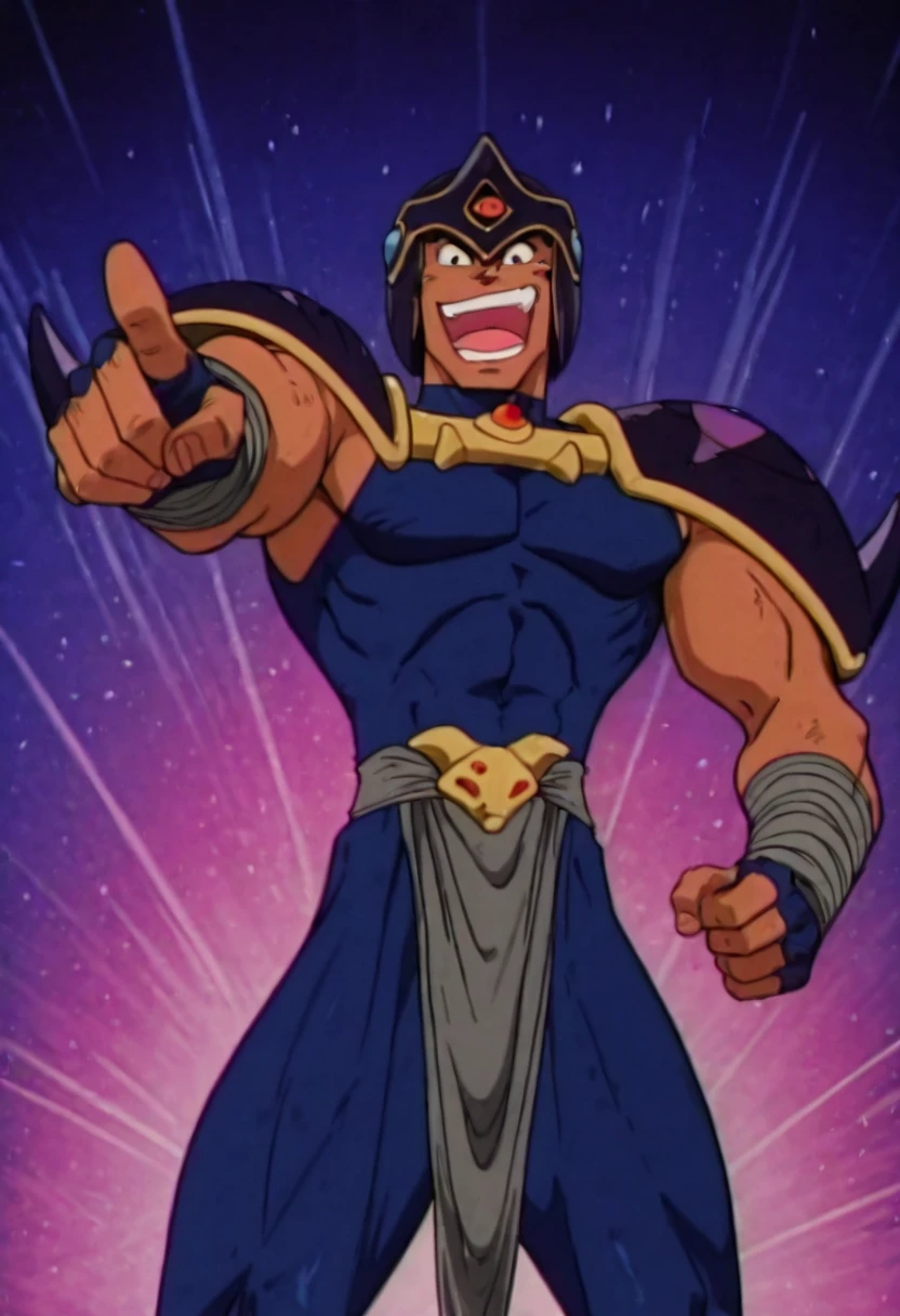 damaramu, 1boy, solo, damuramu helmet, blue body suit, loincloth, wrist wraps, damaramu armor,
