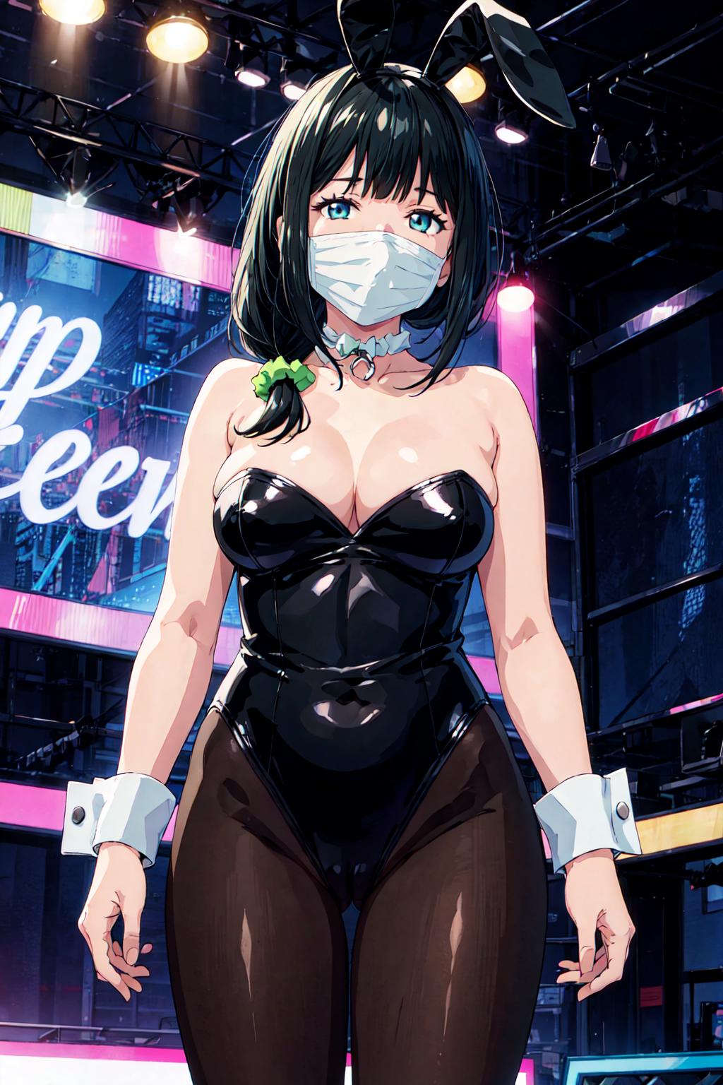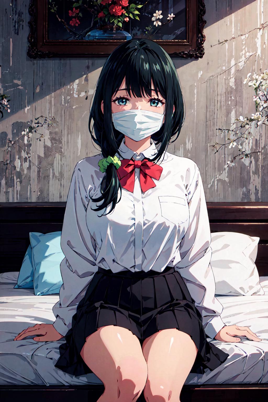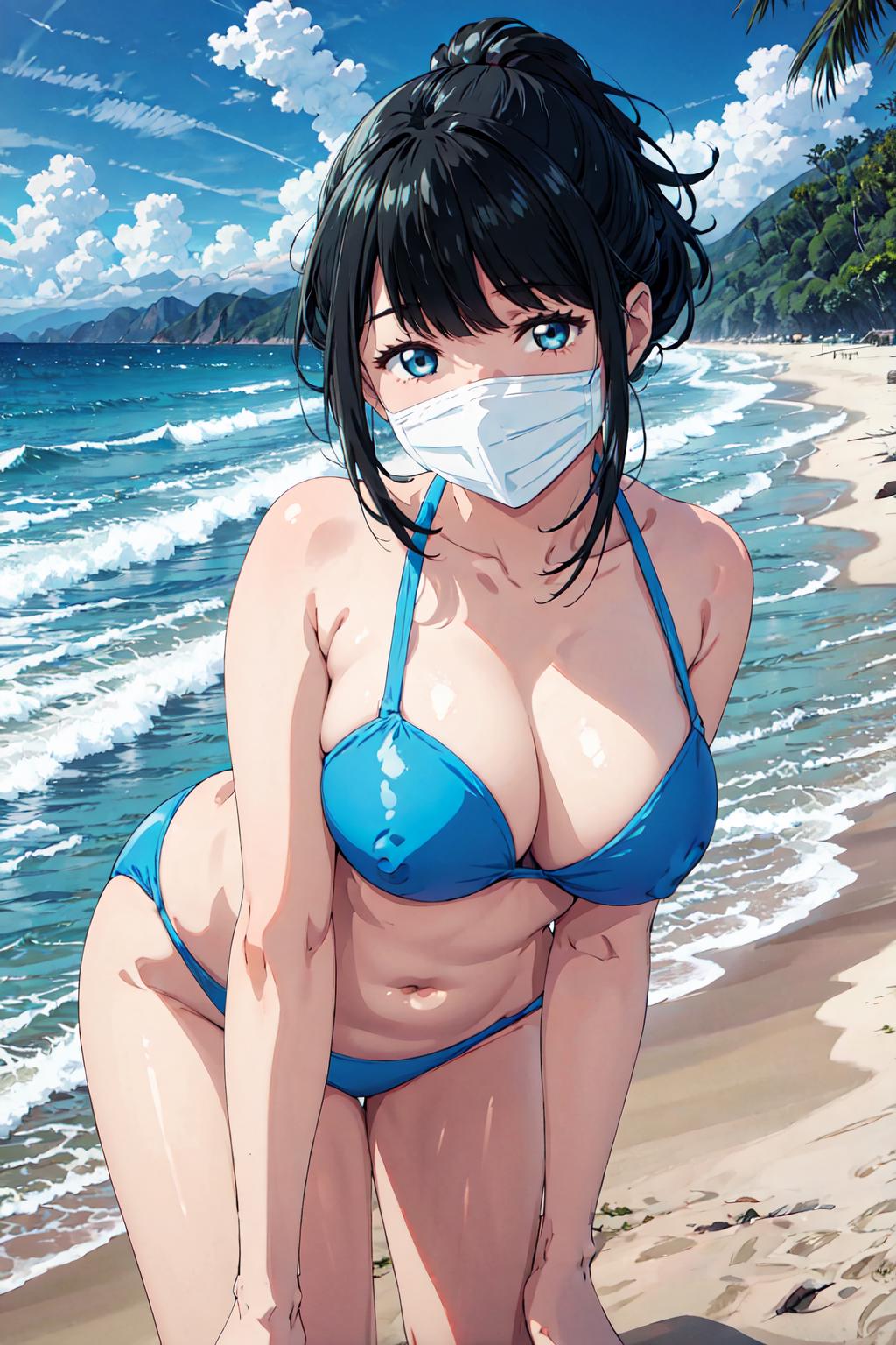 sssshass, black hair, surgical mask, blue eyes, bangs
