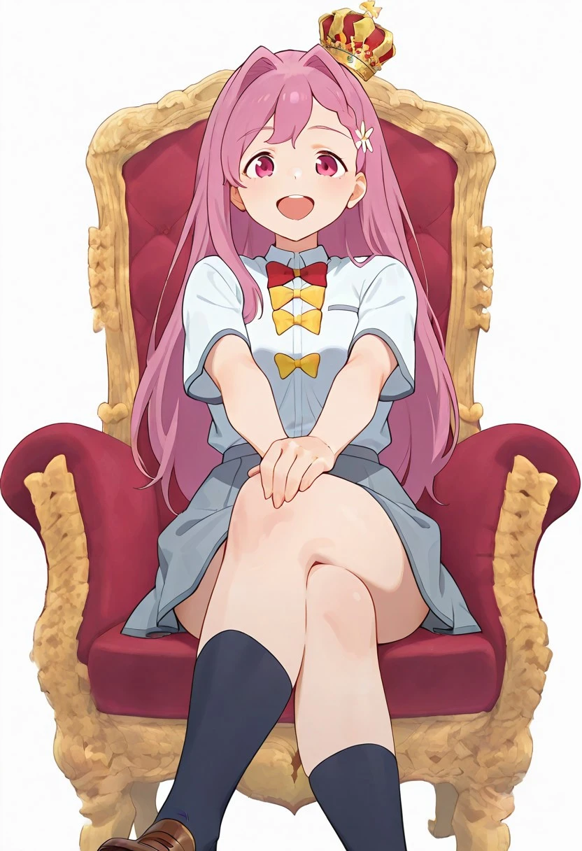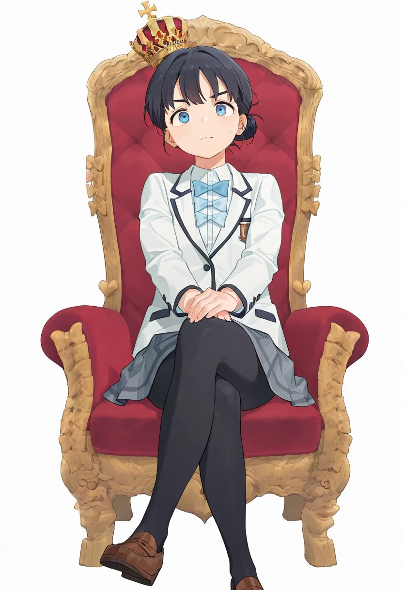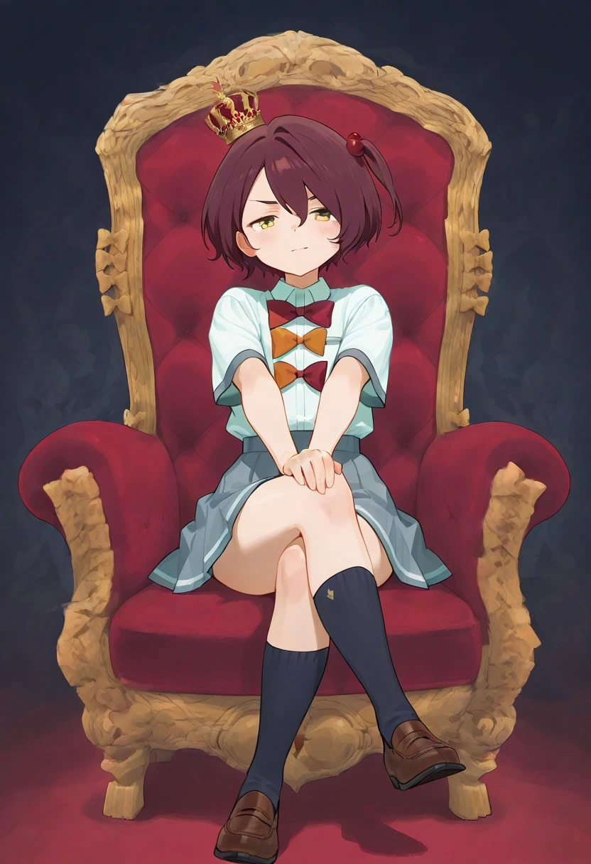 <lora:throne -V1>, sitting, with legs crossed, seated on a throne_M, red throne,full throne,small crown_M,full body