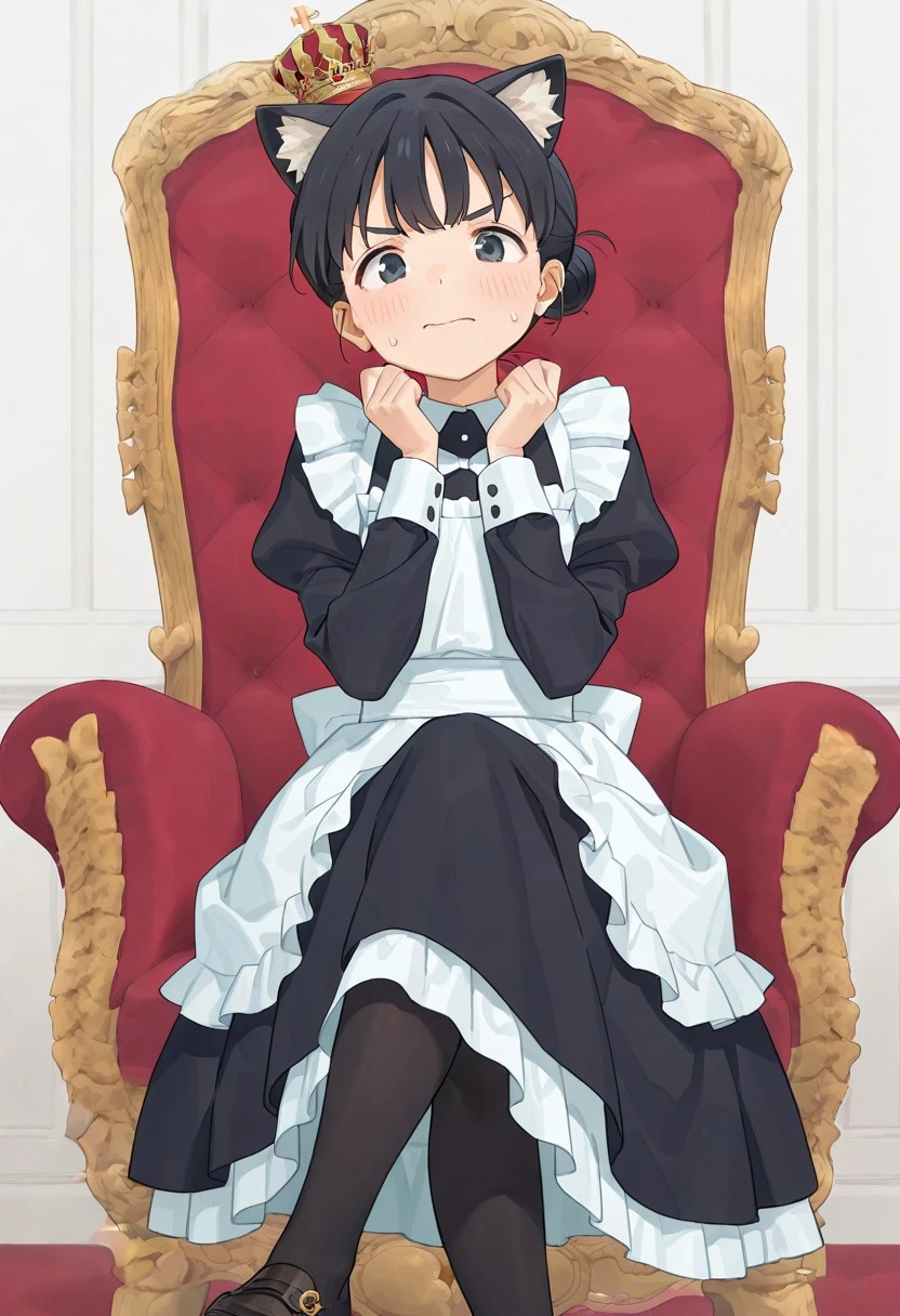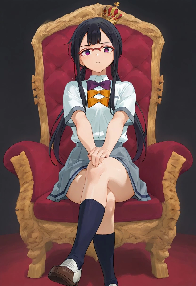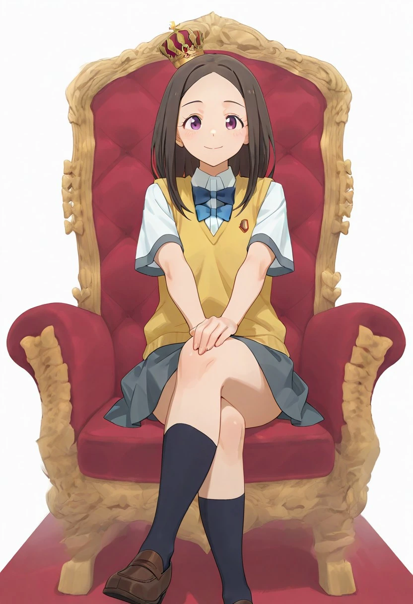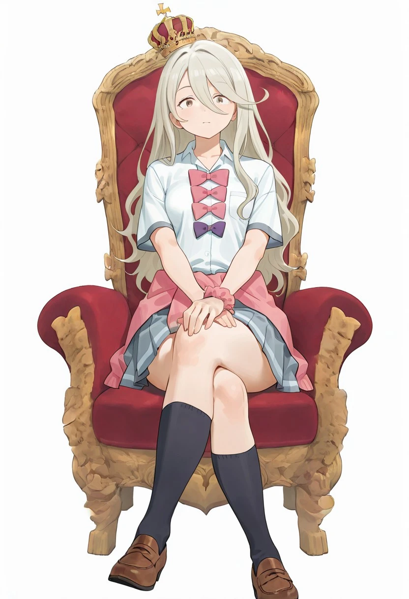 <lora:throne -V1>, sitting, with legs crossed, seated on a throne_M, red throne,full throne,small crown_M,full body