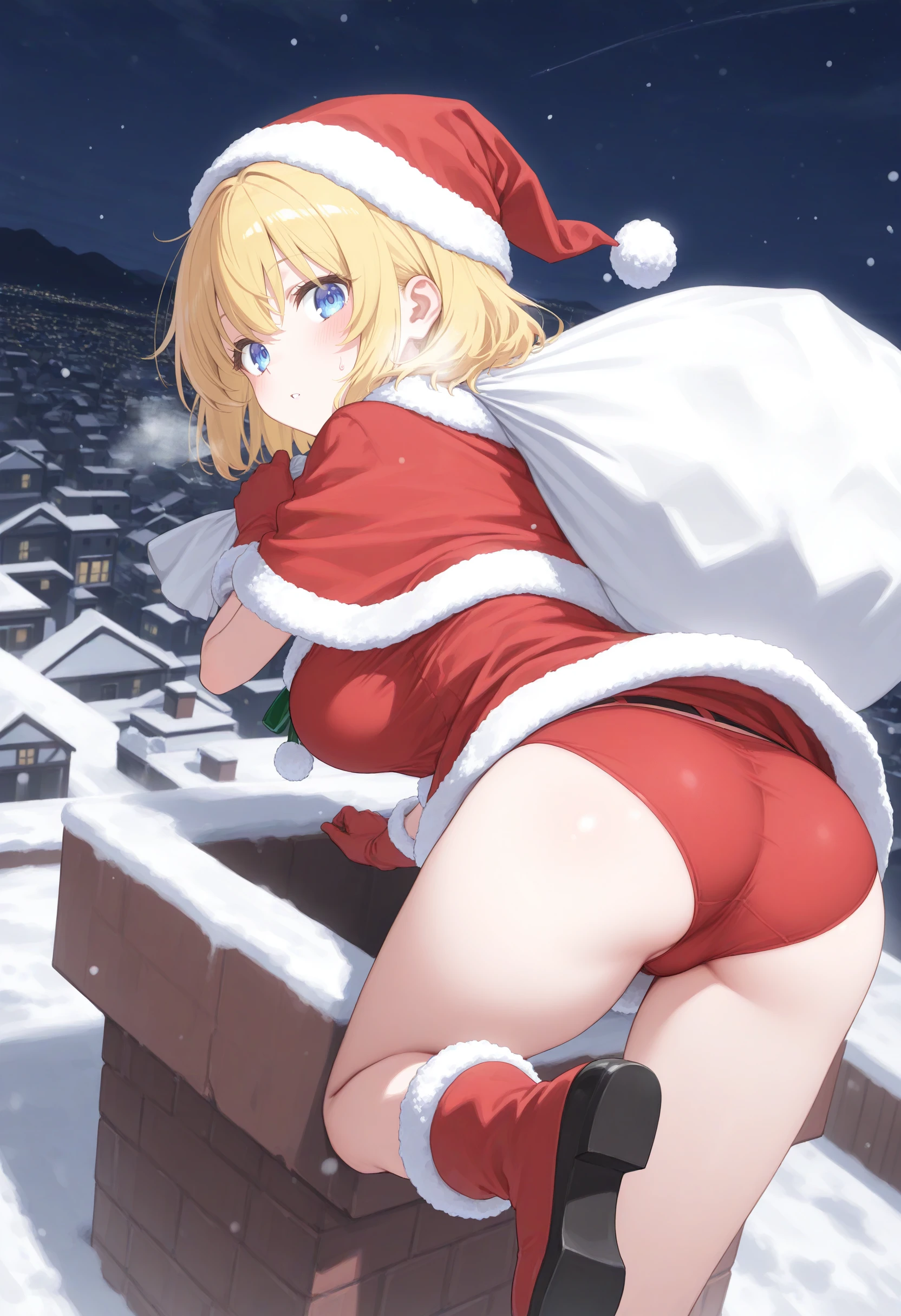 クリスマスでサンタが煙突から侵入したり通り抜けできず引っかかったりさせるLoRAです。