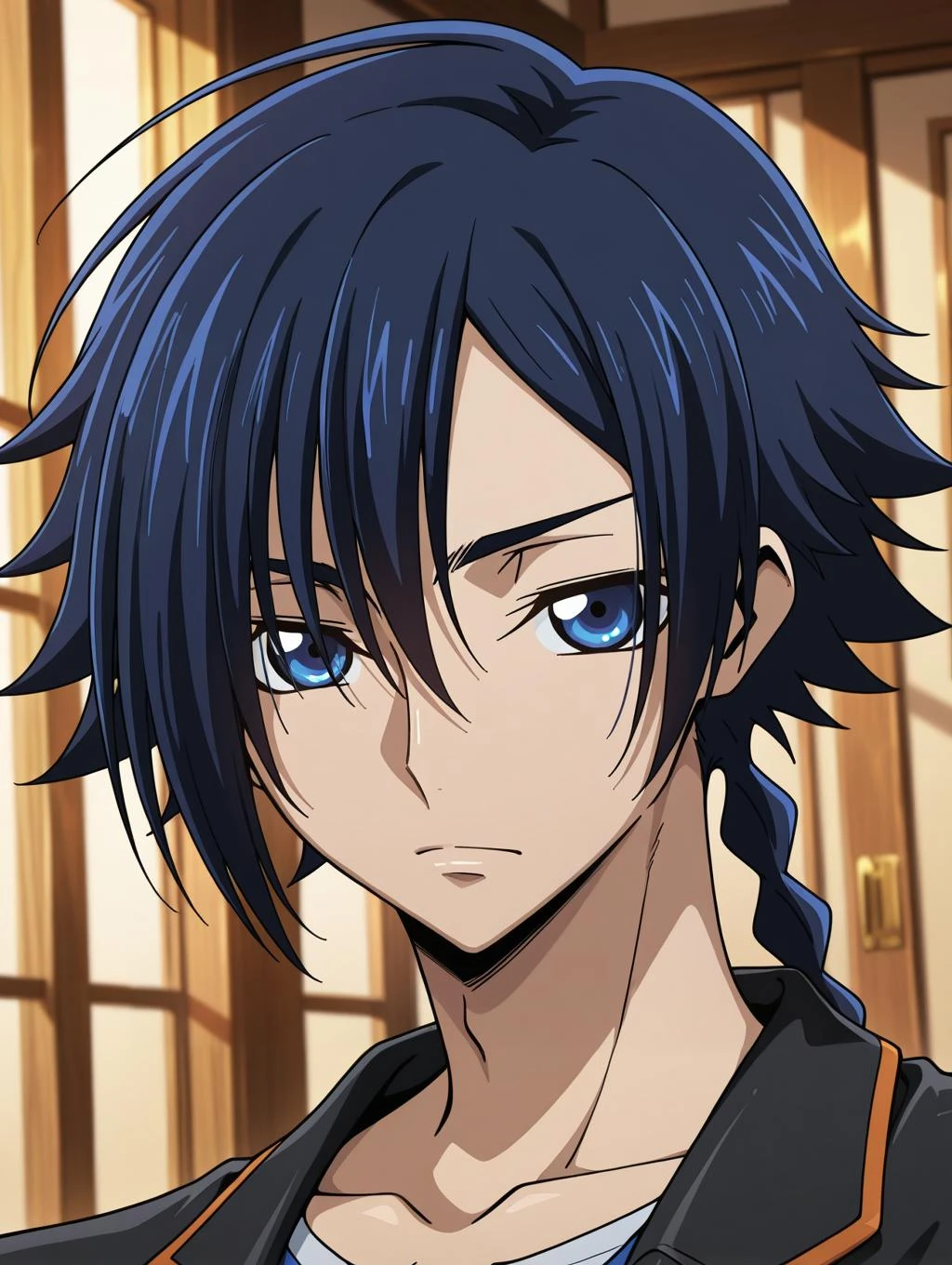 Akito, hyuuga akito, blue hair, blue eyes, single braidClothes: