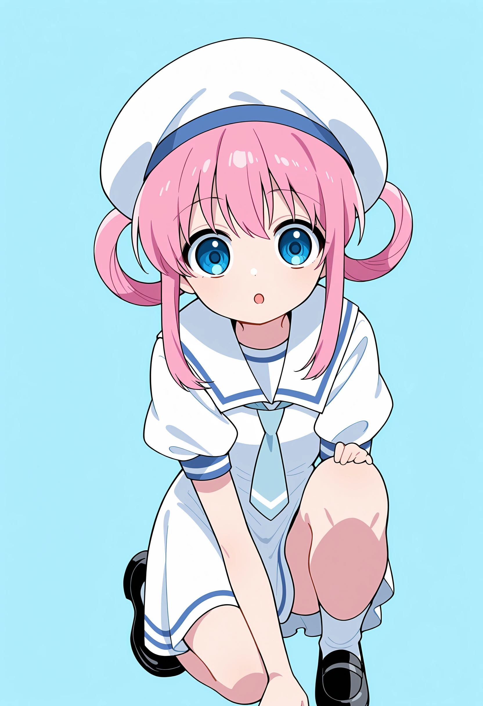 Outfit "White Serafuku": blue eyes, pink hair, hair rings, white serafuku, beret