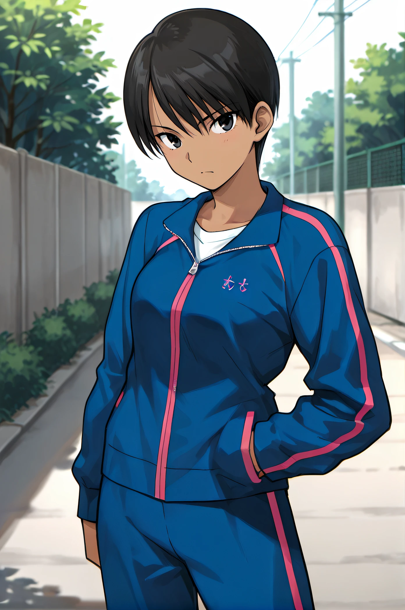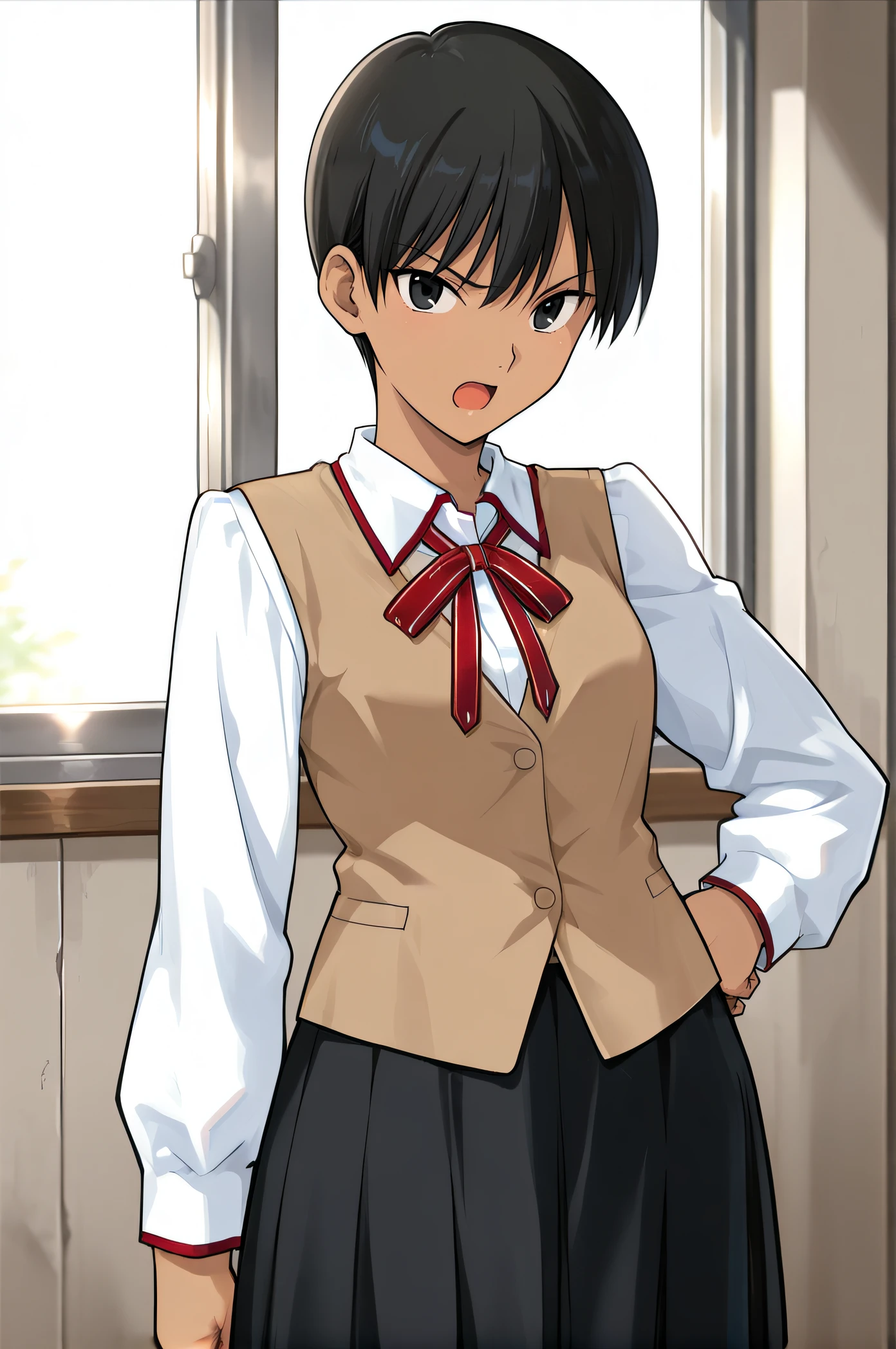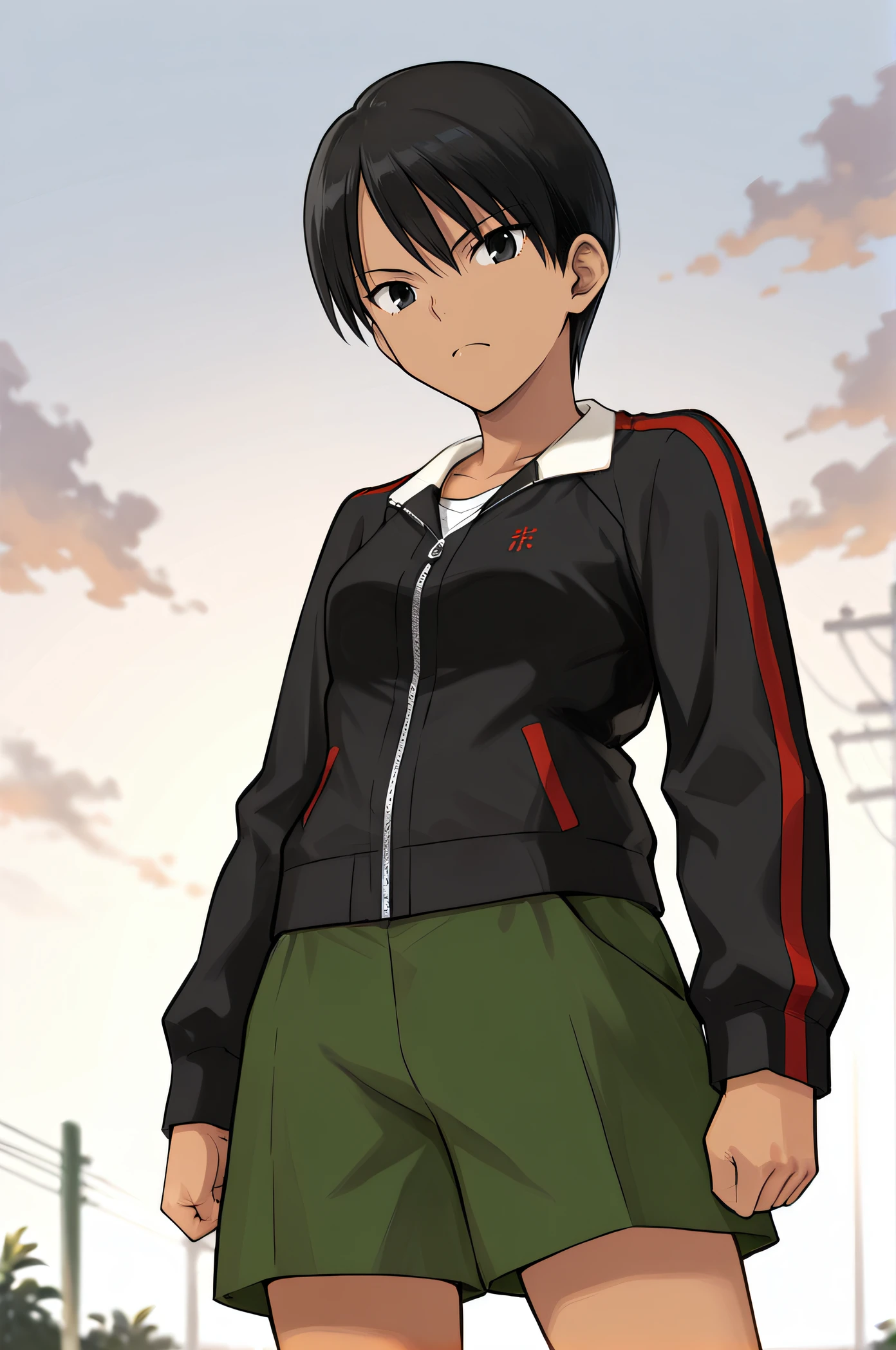 kaede, tomboy, black hair, short hair, dark-skinned female, black eyes