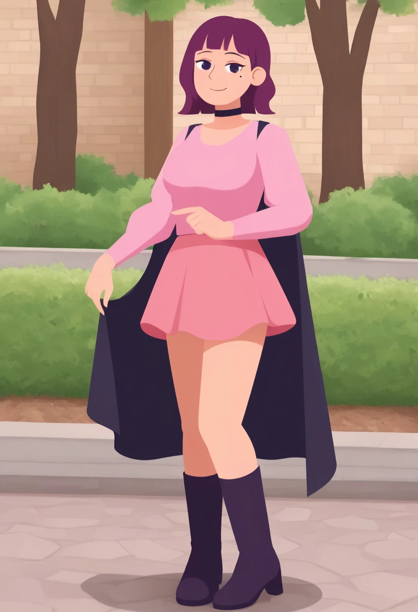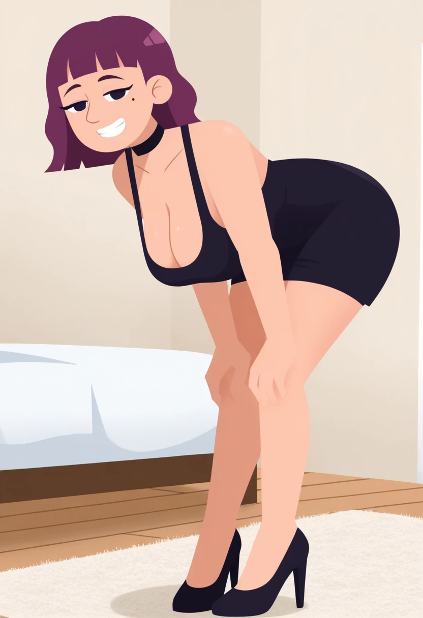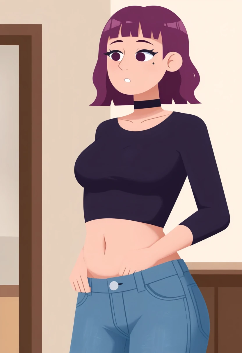 amelia_pathways, purple hair, short hair, bangs, mole under eye, black choker, choker,
