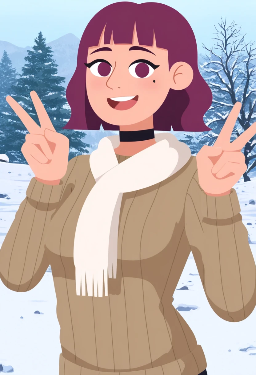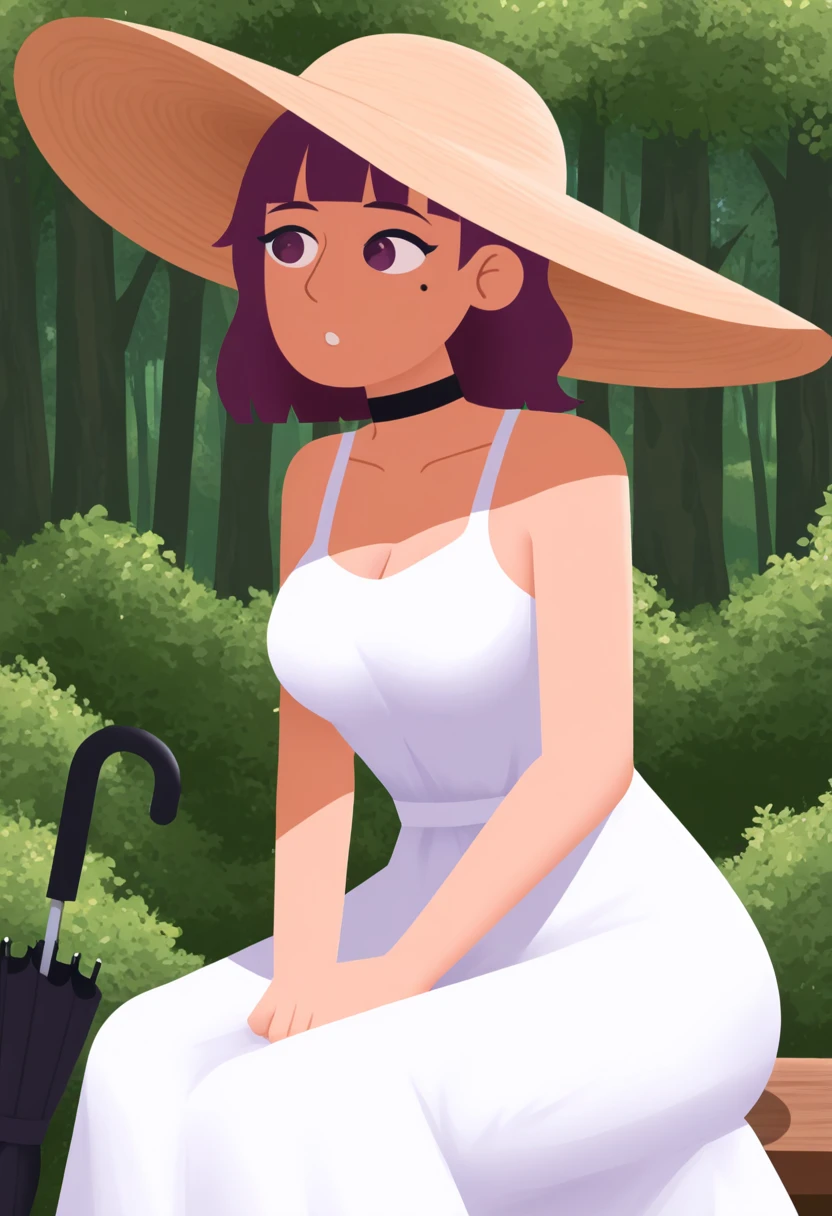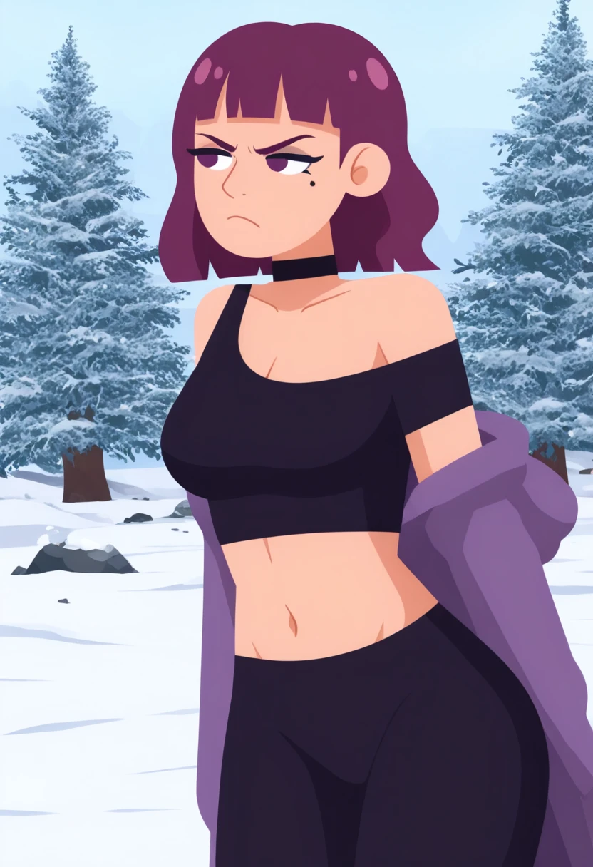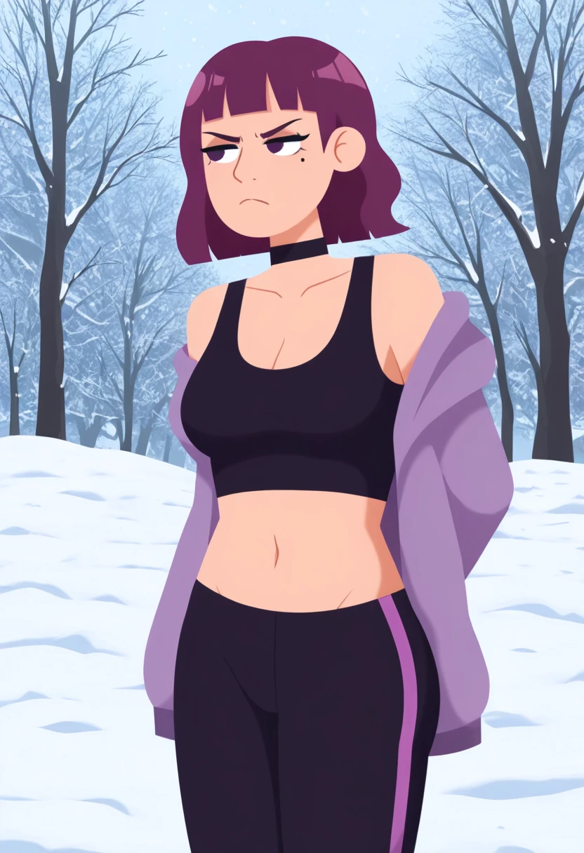 amelia_pathways, purple hair, short hair, bangs, mole under eye, black choker, choker,