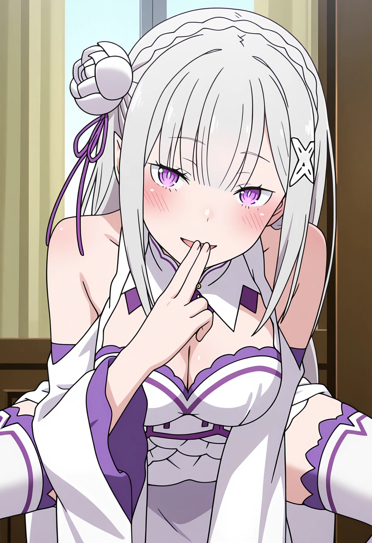 shisedupose, fingers to lips,