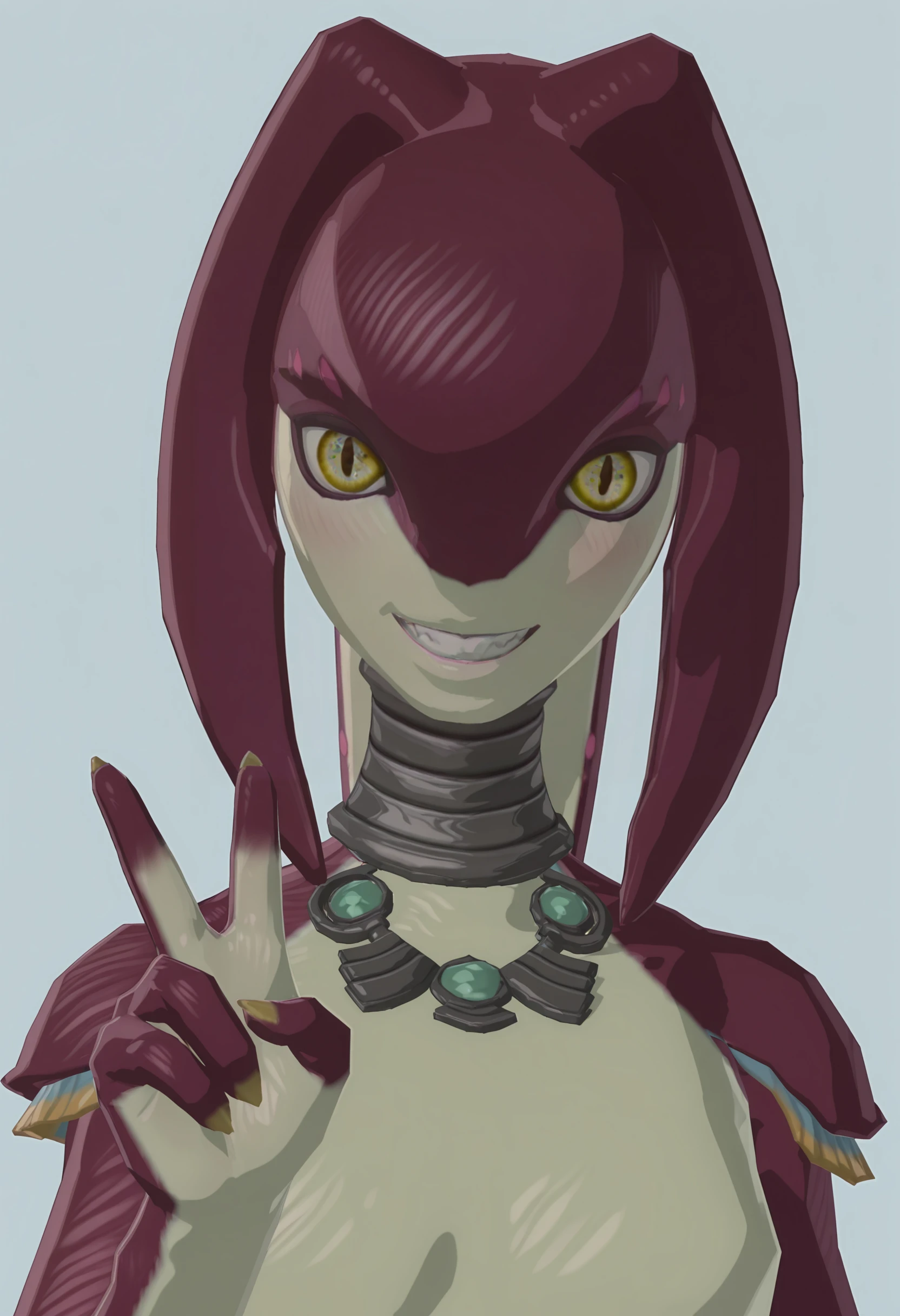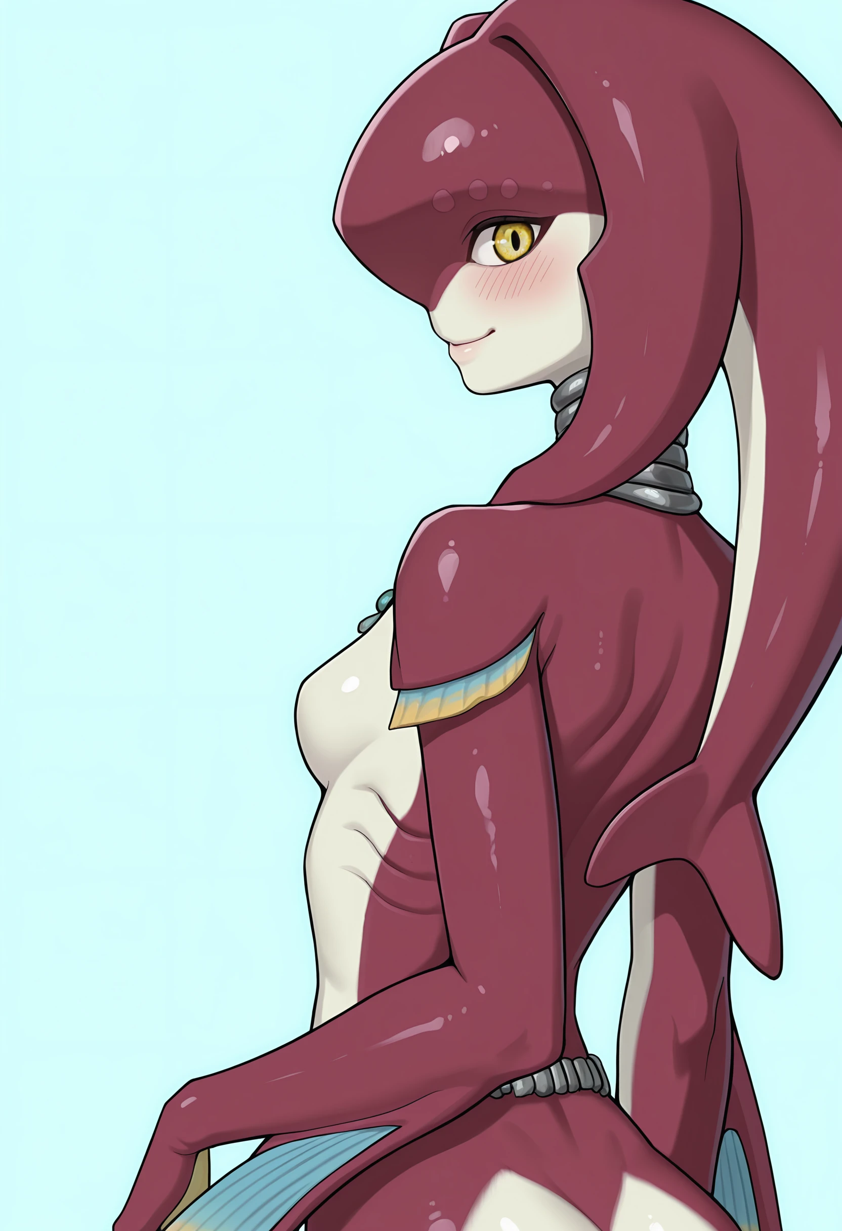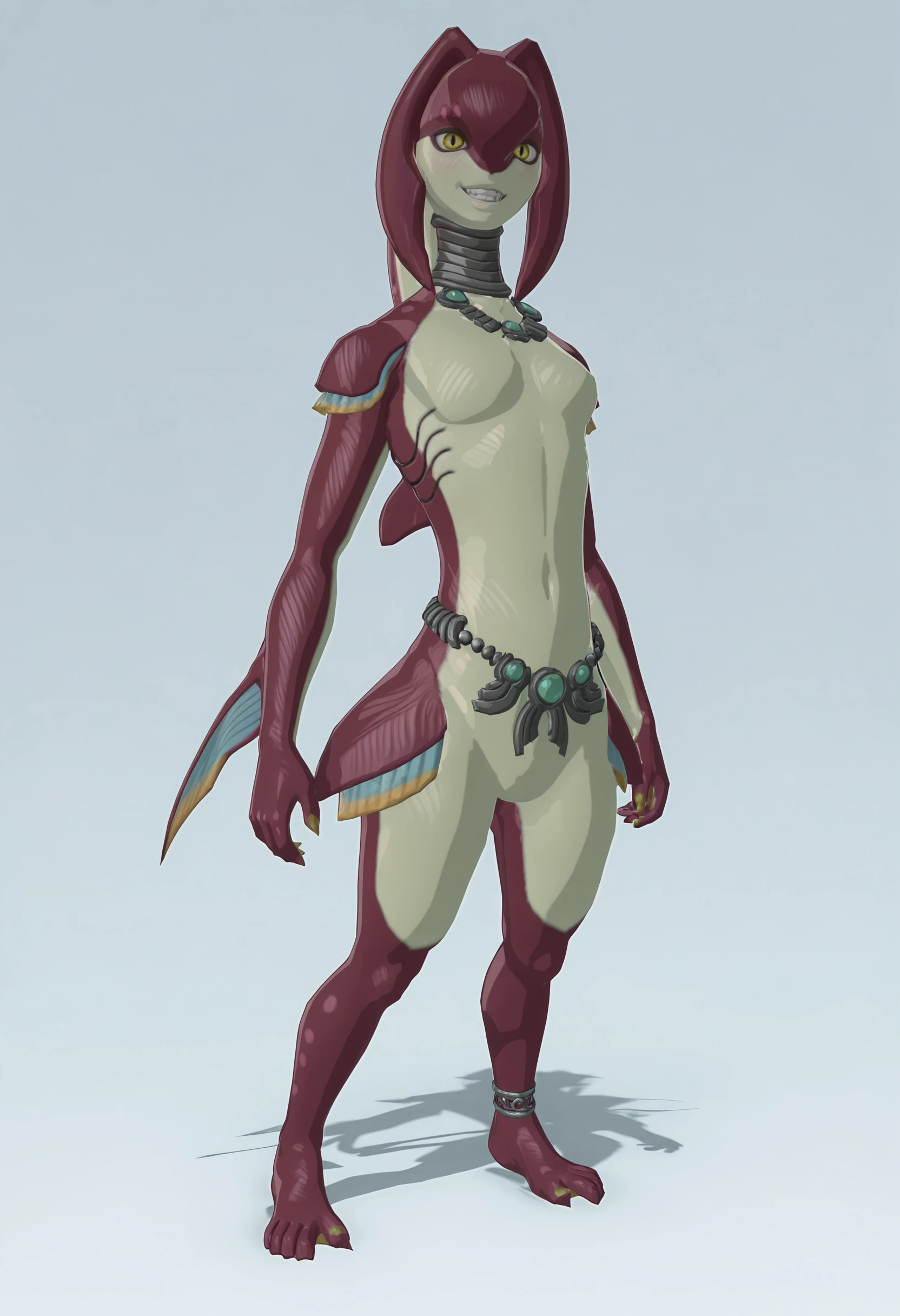 z0rilf, multicolored skin, 1girl, yellow eyes, fins, necklace, anklet
