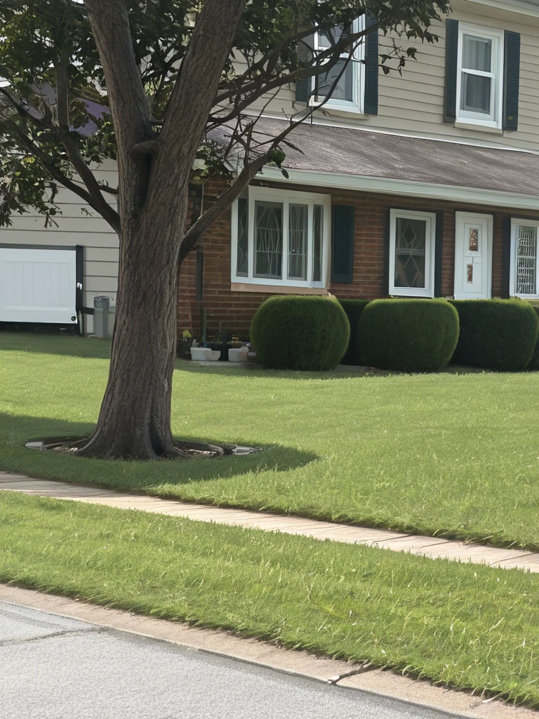 Trained on a collection of 100 photos taken in a typical American housing development on the east coast of the United States, this set produces suburban background scenery of houses, trees, trimmed lawns, cars, manicured hedges, and roads.