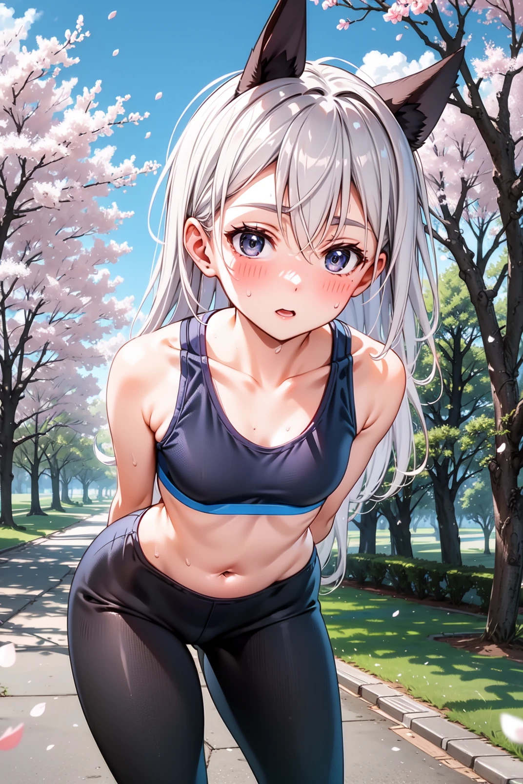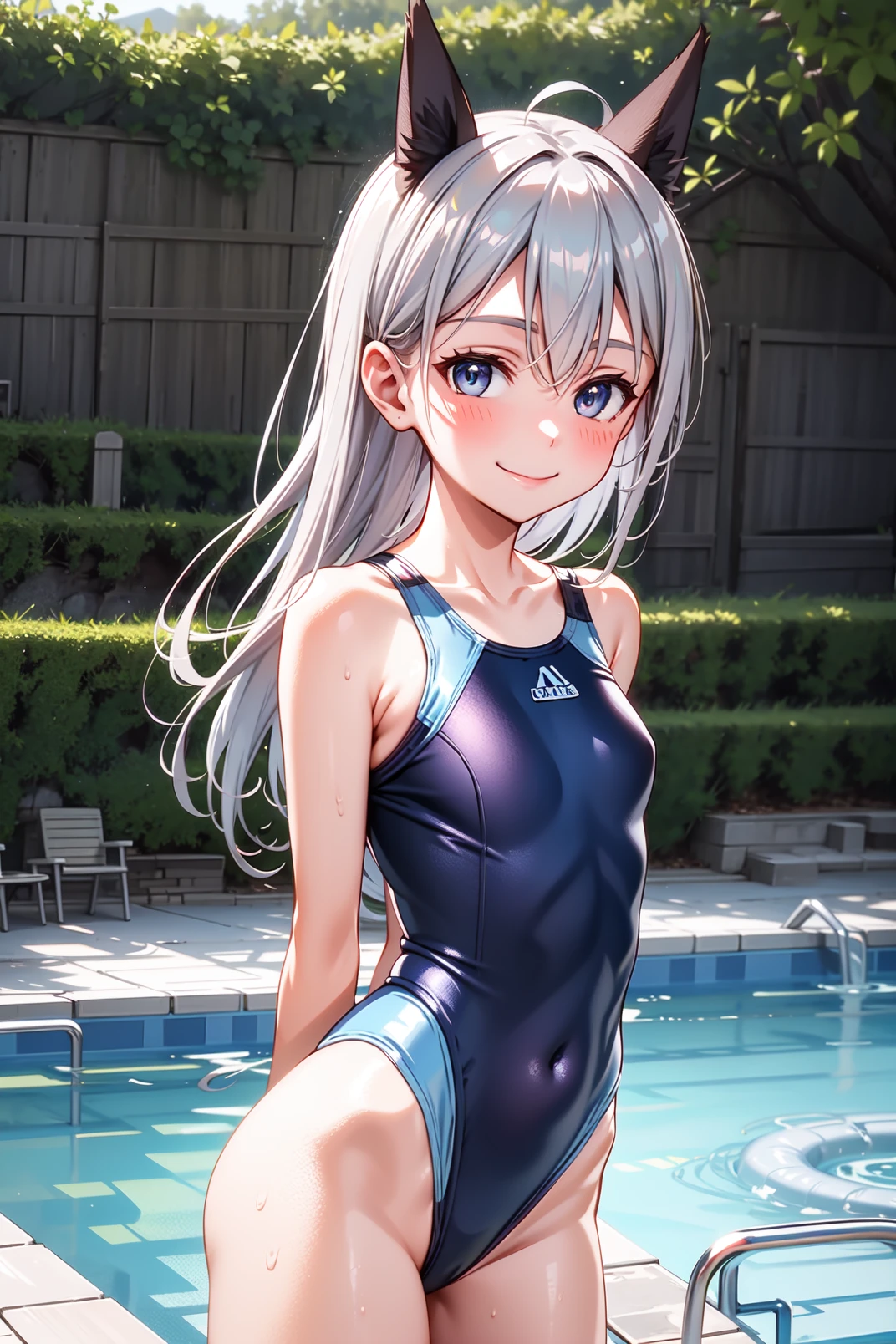 eila, blue eyes, grey hair, long hair, fox ears, fox tail
