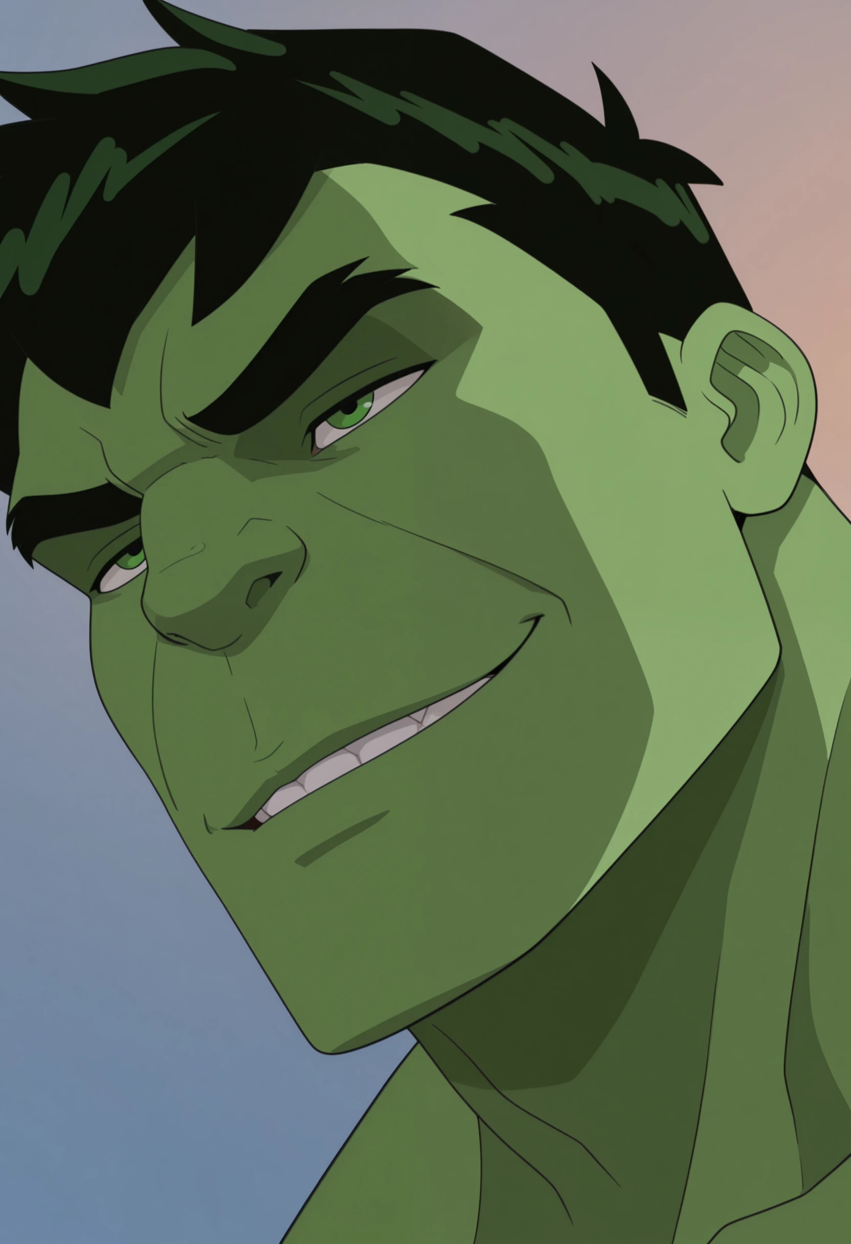 USPHulk, human, green skin, green eyes,