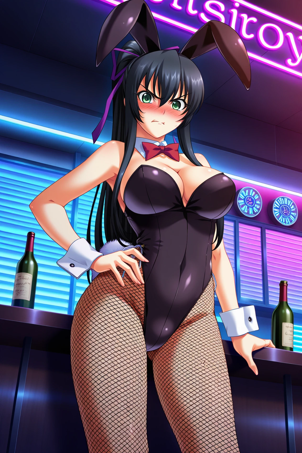 Bunny Outfit : bunny ears,bare shoulders,playboy bunny, fishnet pantyhose, cleavage,wrist cuffs, bow, bowtie, detached collar,bunny tail