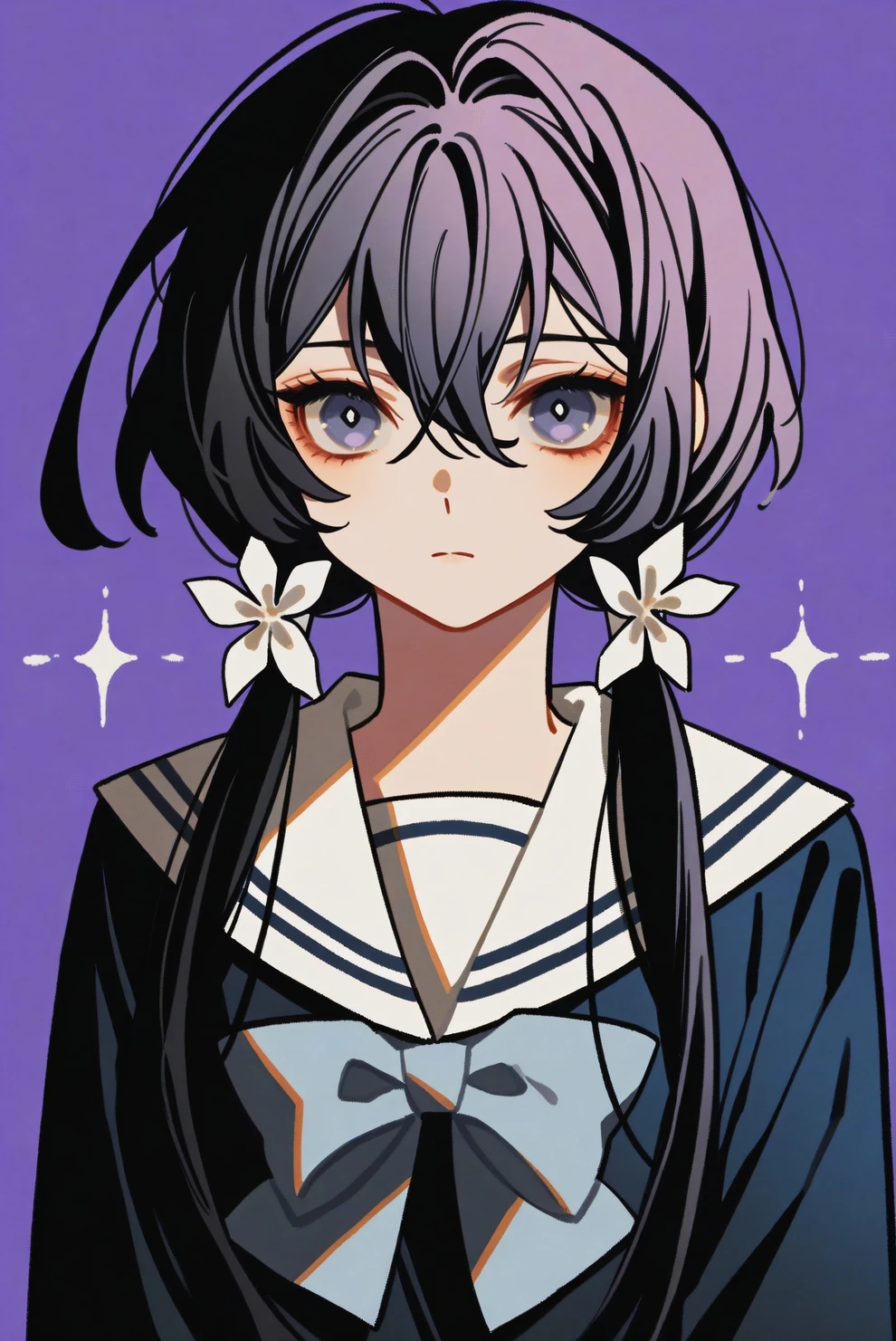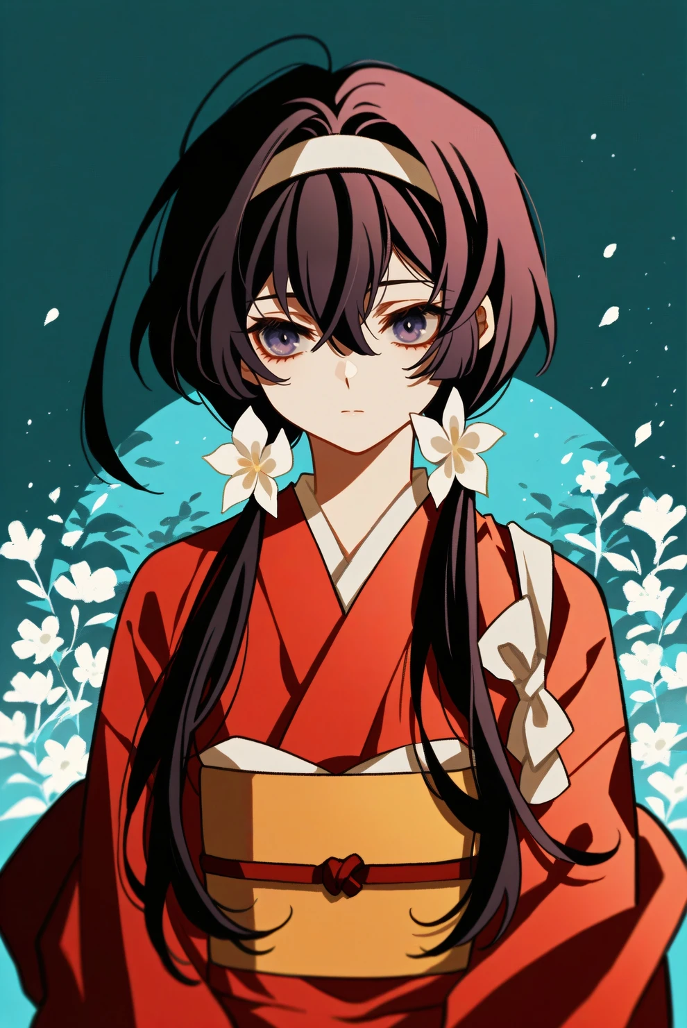 low twintails, hairband, hair flower