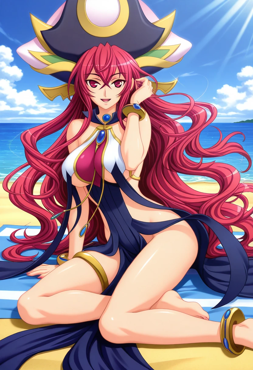• lunarverse costume, revealing clothes, large hat, bracelet, anklet, platform footwear,