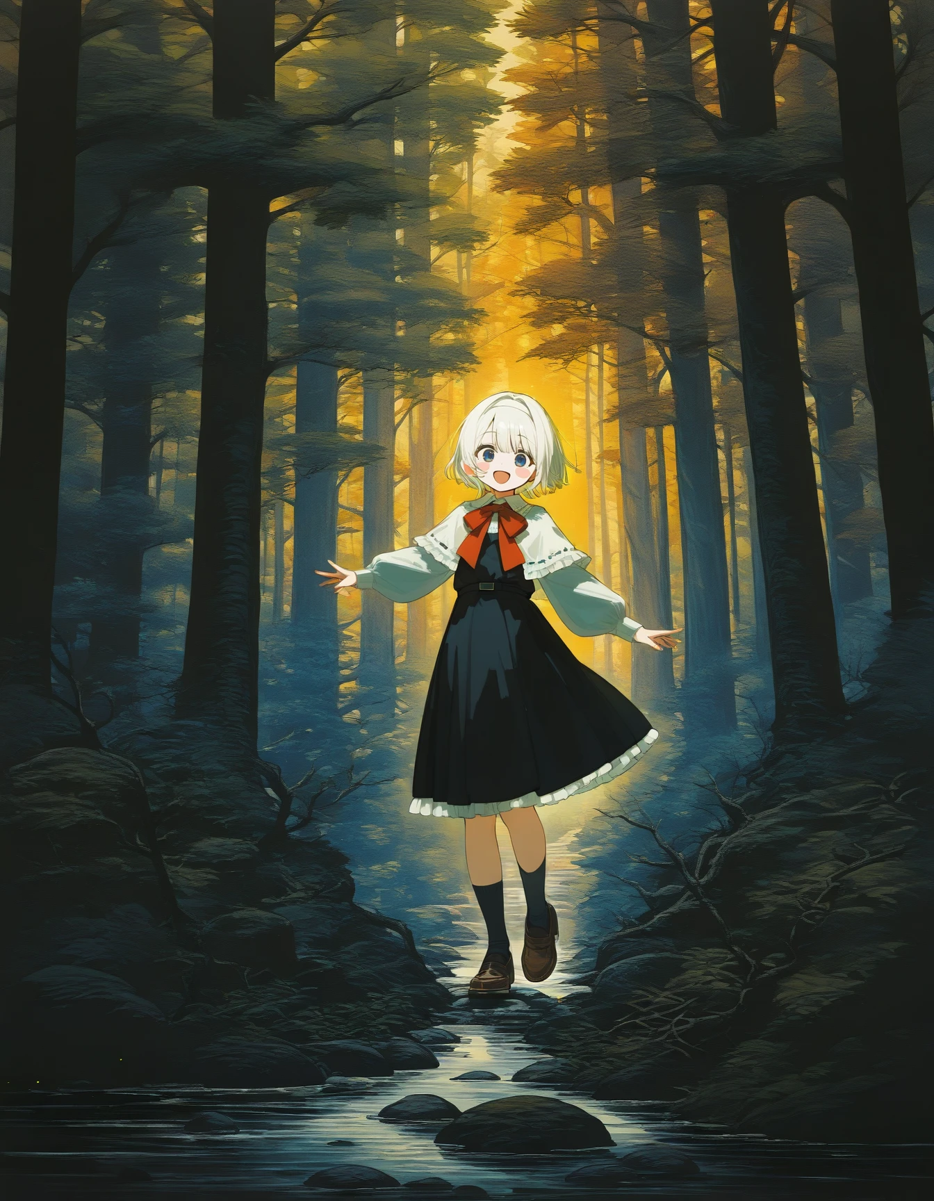 The support prompt ((Scenery, detailed background)), helps bring out the detailed backgrounds lodged within the dataset. It is not necessary to bring the style out, as you can see in the sample images, but it is more evocative of the style in the original dataset.