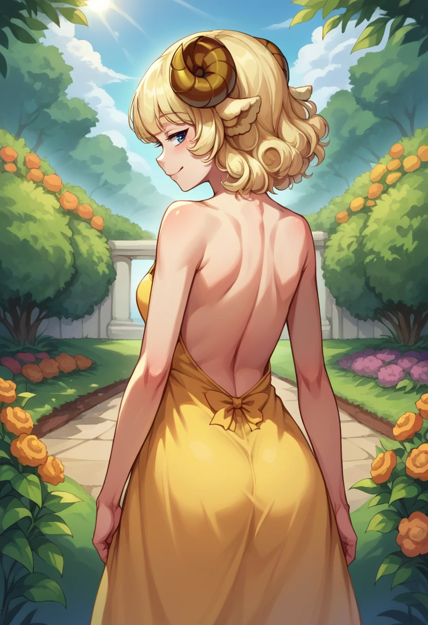 Weresheep, blonde hair, blue eyes, horns, sheep ears