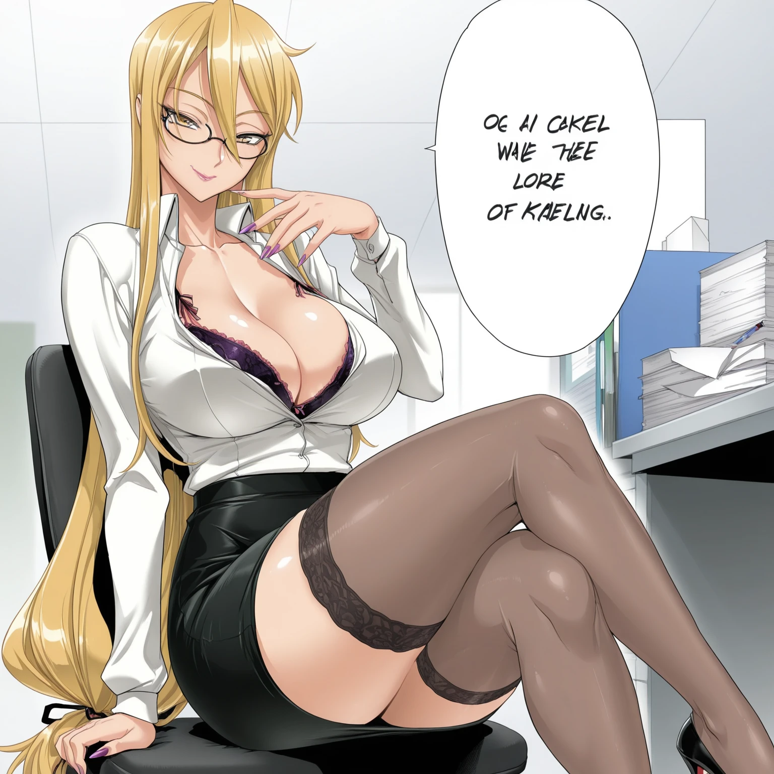 blonde hair, very long hair, low-tied long hair, yellow eyes, hair between eyes, massive breasts, slender, lips, manga, sketch, hatching shadow