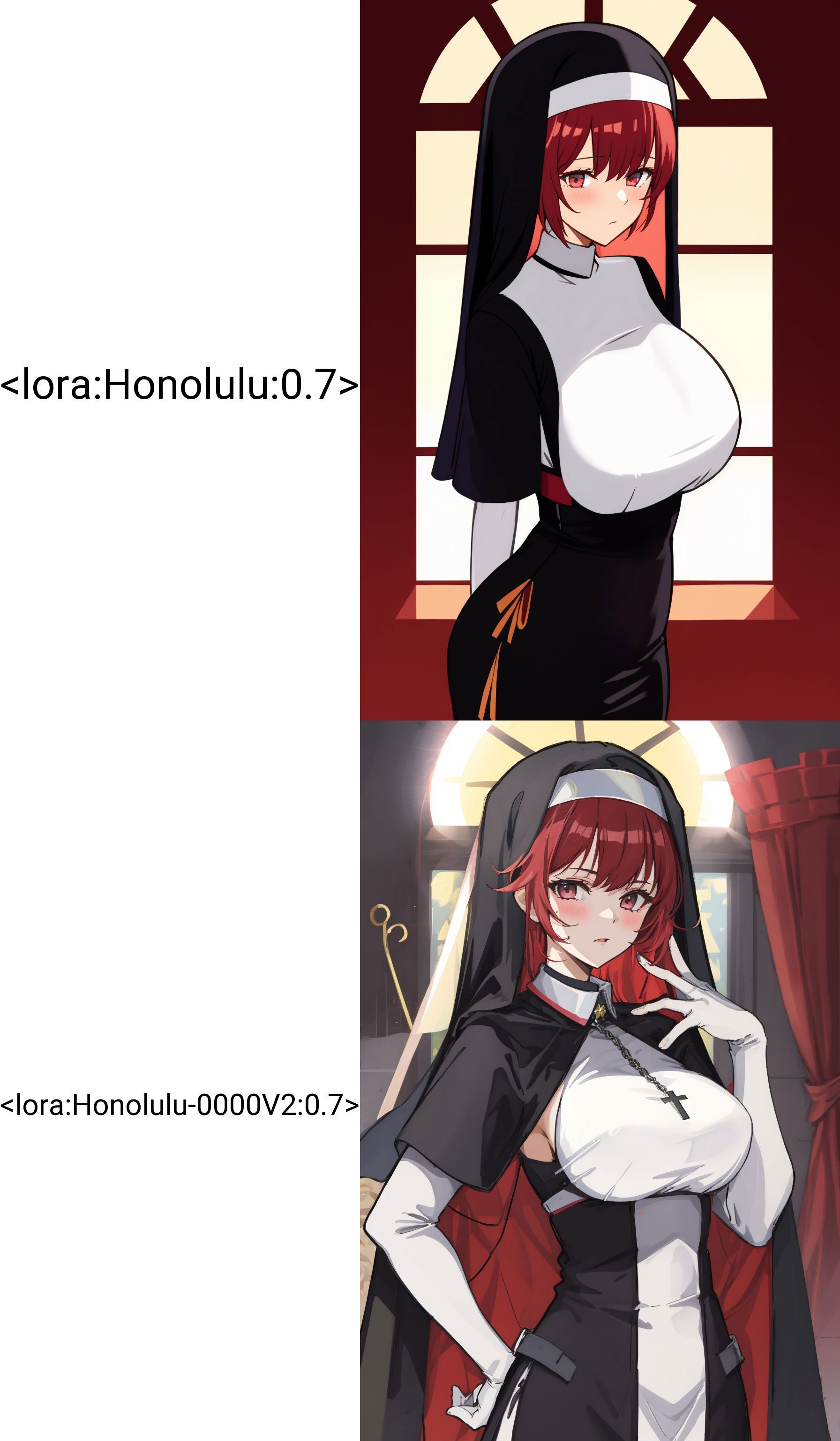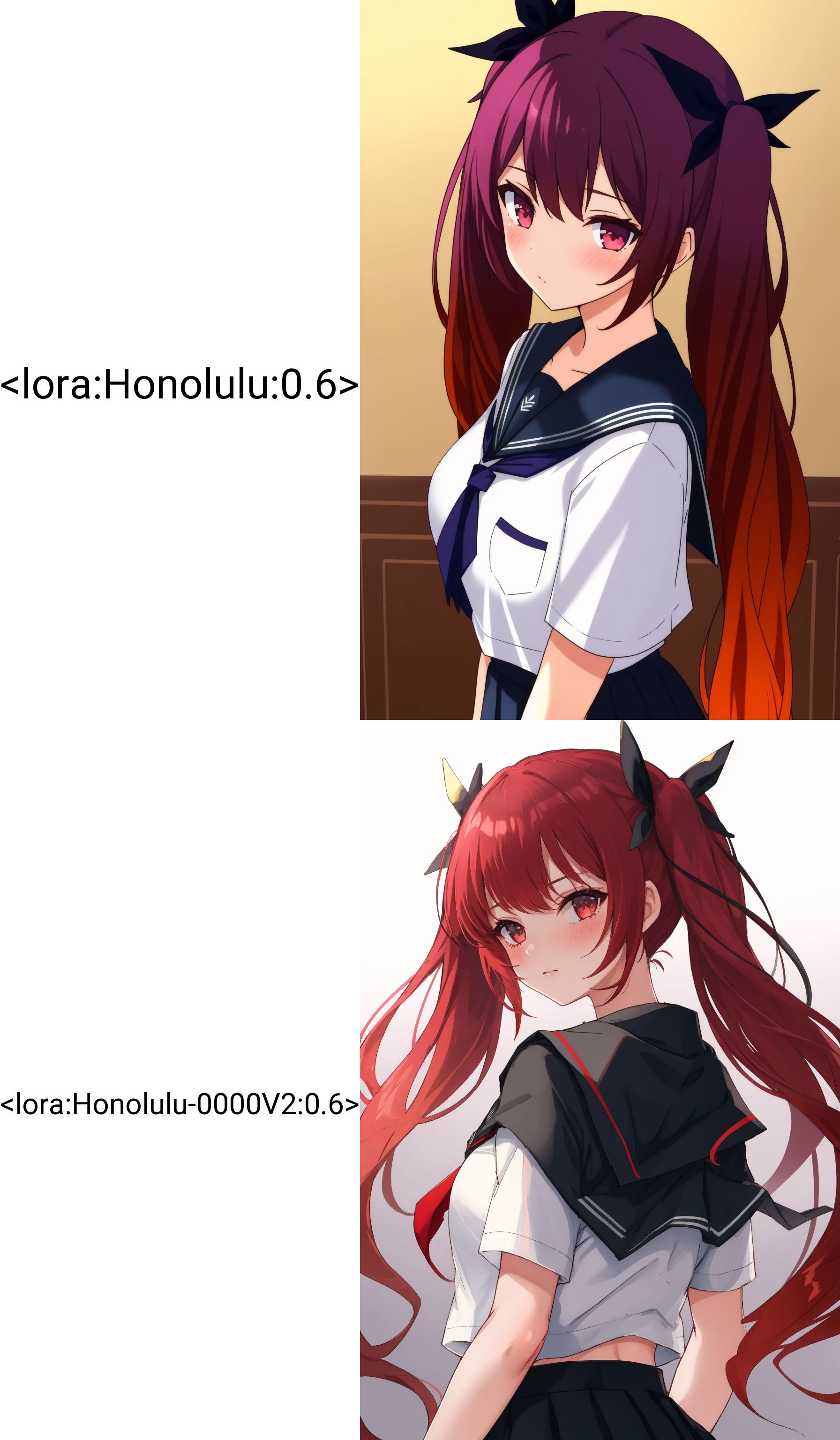 I have noticed a problem in using loRA the hair of Honolulu becomes darker, this effect can be seen in the art section