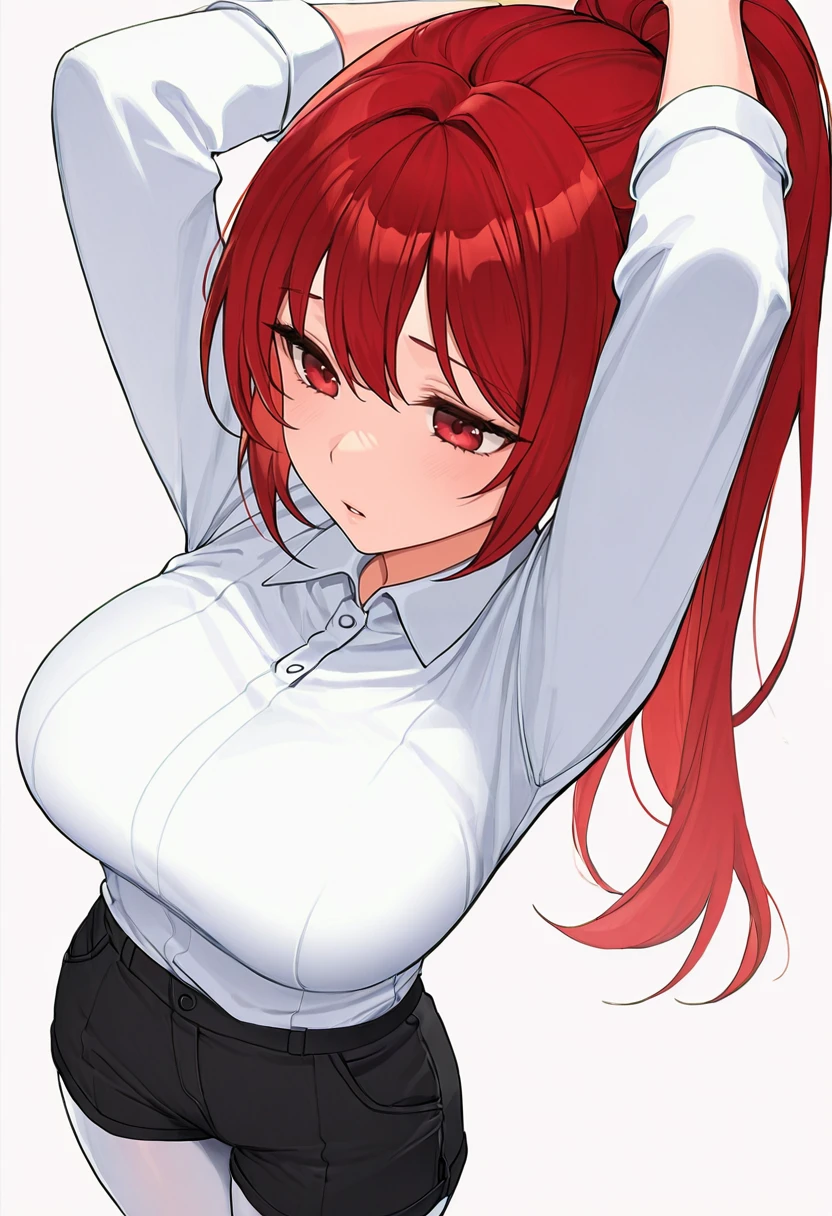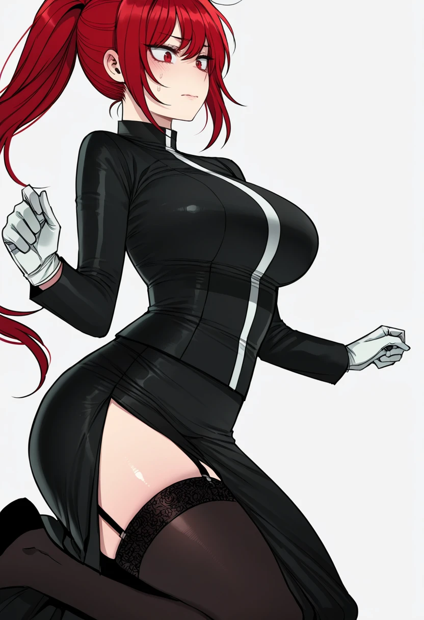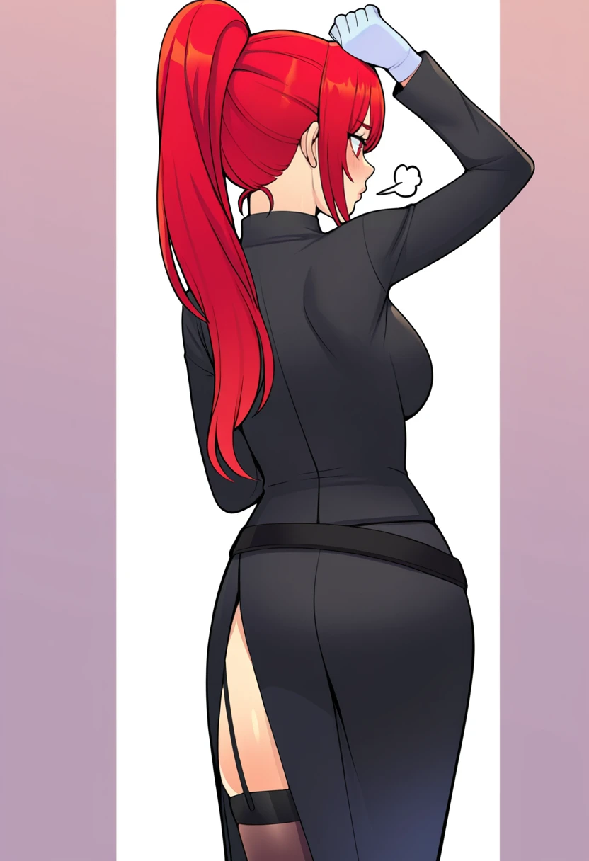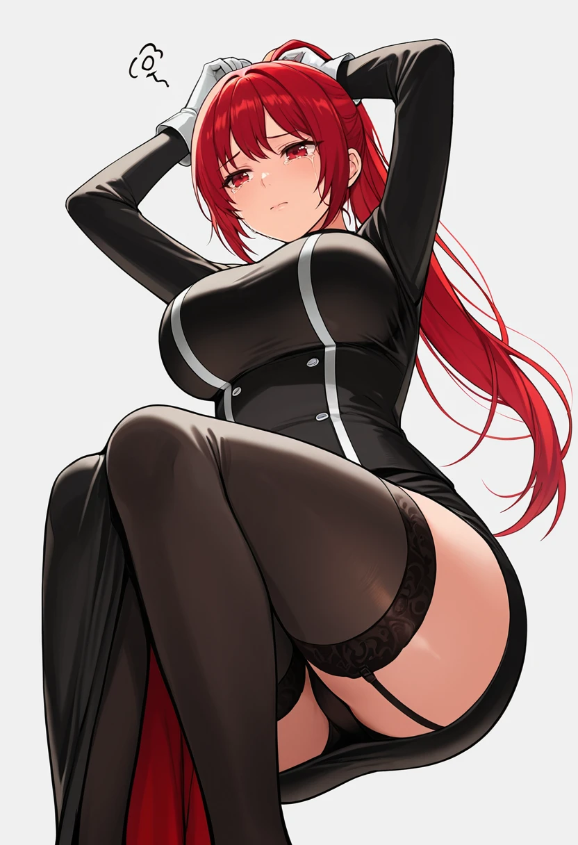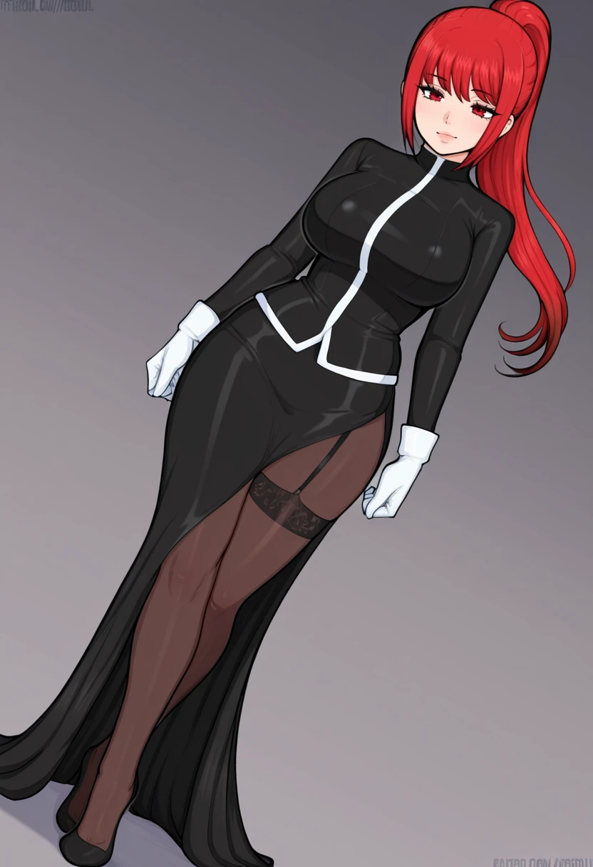 inquisitor_cnr,1girl, red hair, long hair, ponytail, red eyes, large breasts,👗Default Outfit