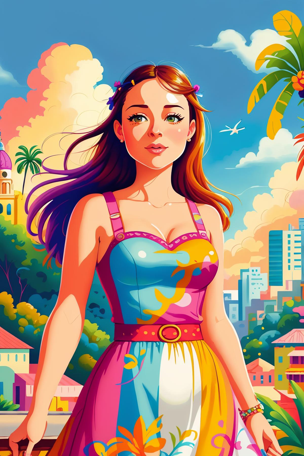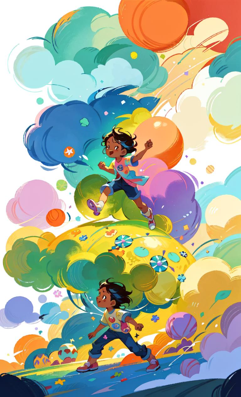 sprinkledpastels style - more realistic character proportion compared to playfulwhimsy (like comics or graphic novels), lots of random colorful elements scattered around, complex compositions