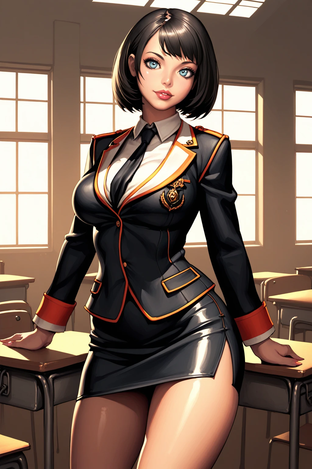Trigger School : 1girl, short hair, bangs, school uniform, skirt