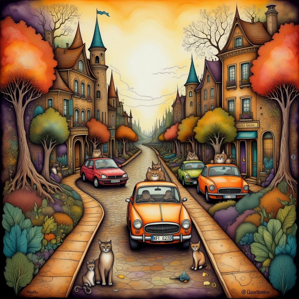 Images respond well to different mediums: crayon, pen and ink, color pencil, watercolor etc.