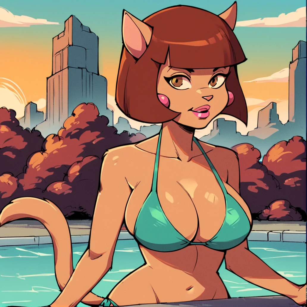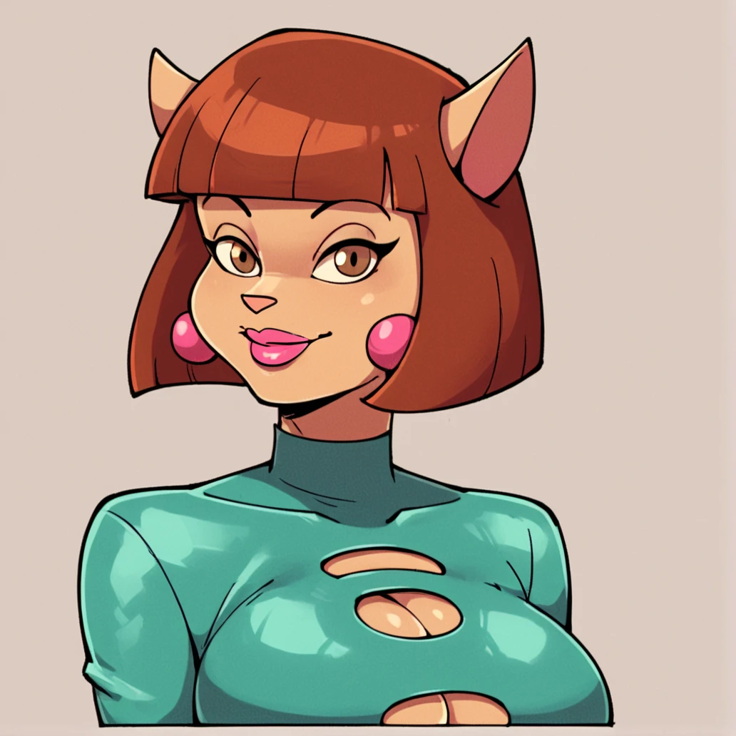 TAGS: Ann Gora, Furry female, catgirl, furry female, animal nose, cat ears, short hair, brown hair, bluntbangs, brown eyes, pink lipstick