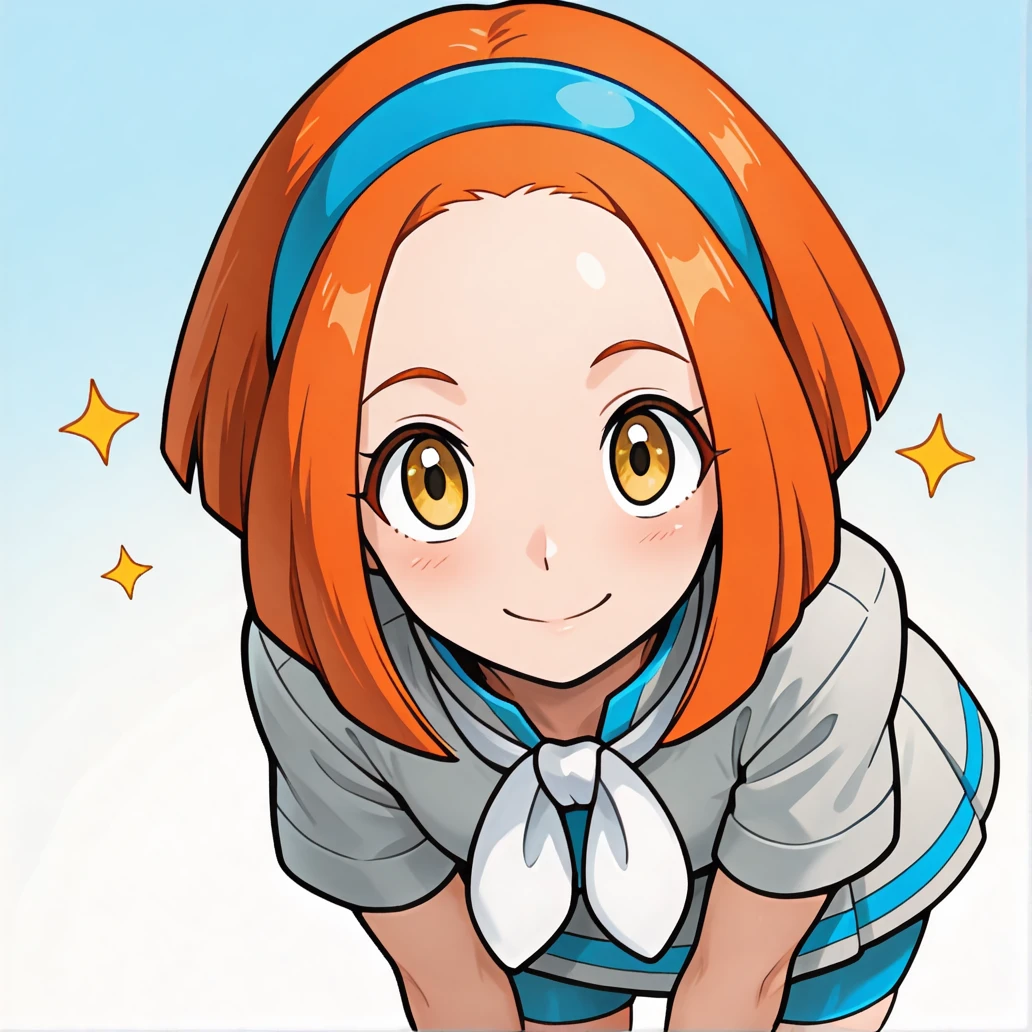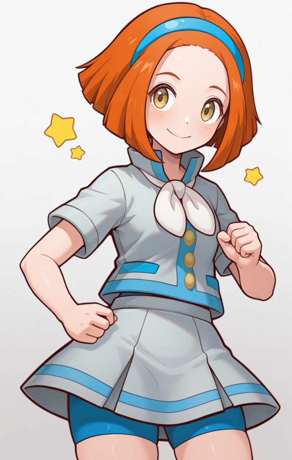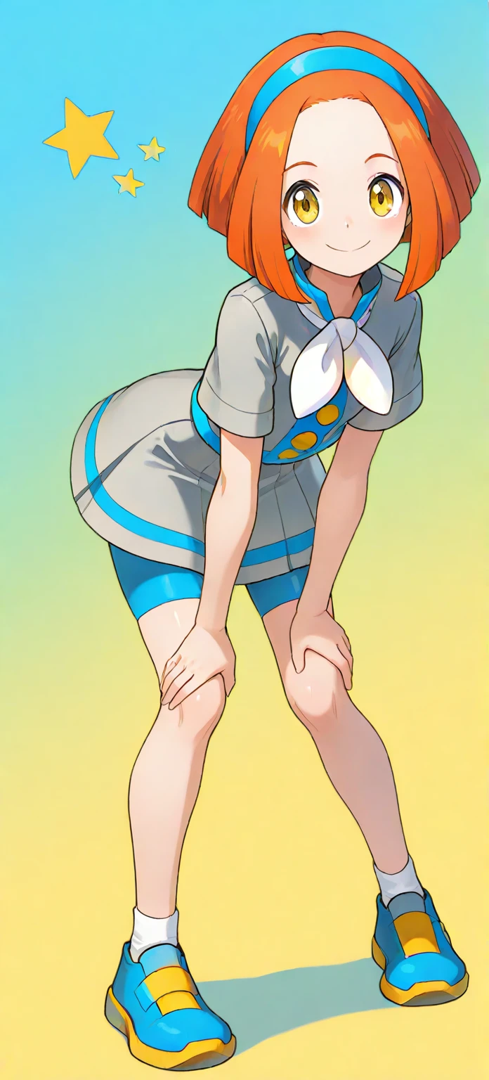xyrstar, rising star \(pokemon), short hair, orange hair, yellow eyes, aged up