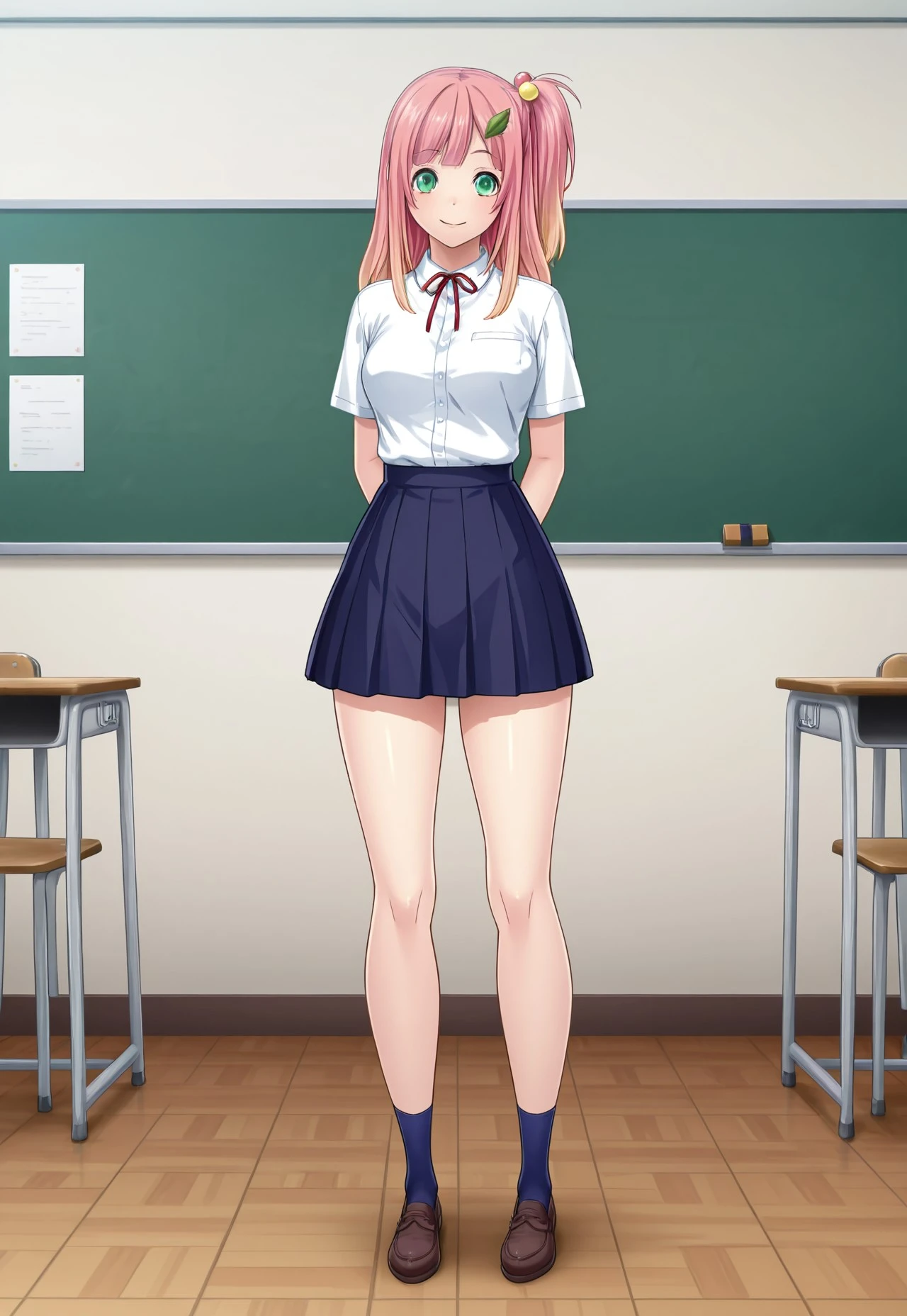 Hair : Side ponytail,pink gradient hair,leaf hair ornament,pearl hair ornament,