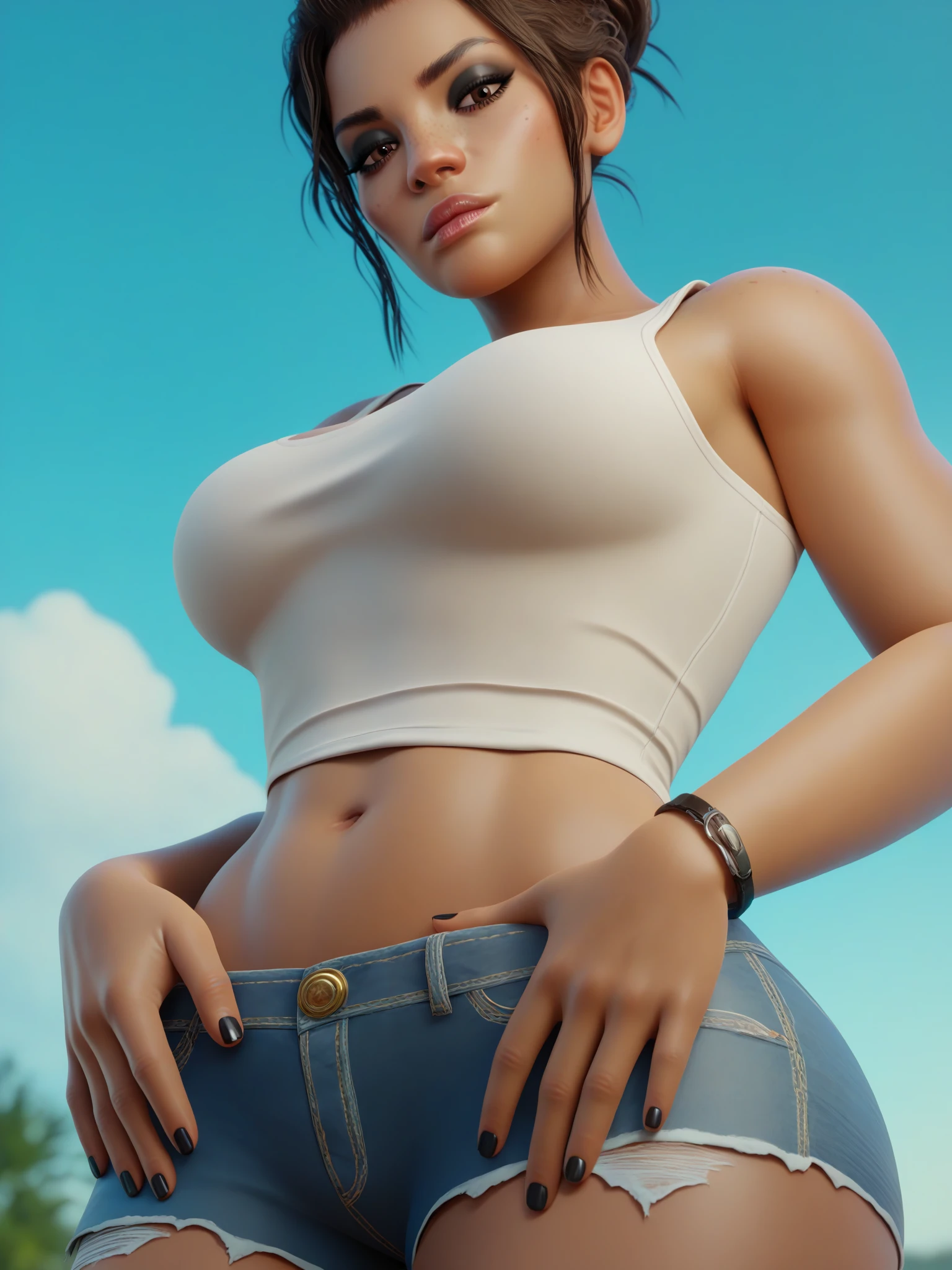 It is less based off of the game characters look and more of a NSFW lora. Trigger words are not needed but using tags like brown or black hair, black or brown eyes and black eye shadow are pretty consistent, Did 2 versions of this, one that has somewhat the look of Panam's outfit and tattoo and another that is mostly only the head so you can do different clothing without the base outfit leaking into it as much.