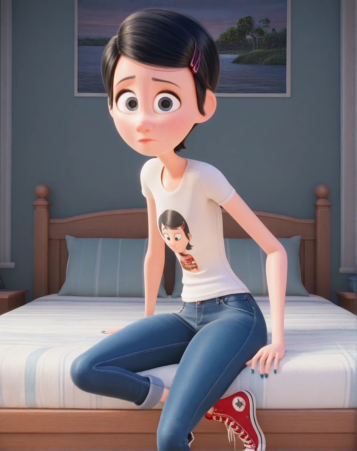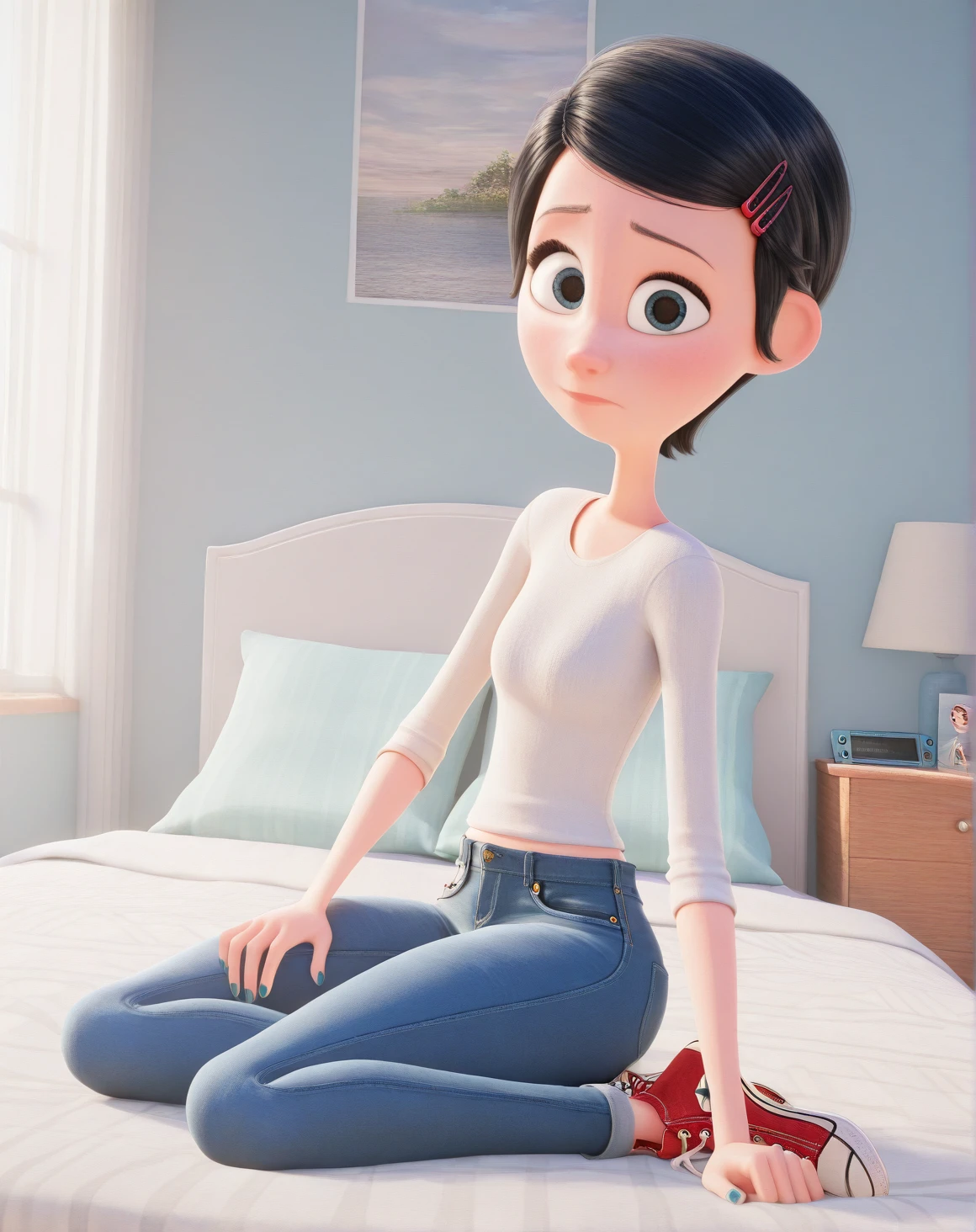 masterpiece, parody, best quality, absurdres, 3d, 1girl, solo, , black hair, hair ornament, hairclip, short hair, nail polish, Katie,