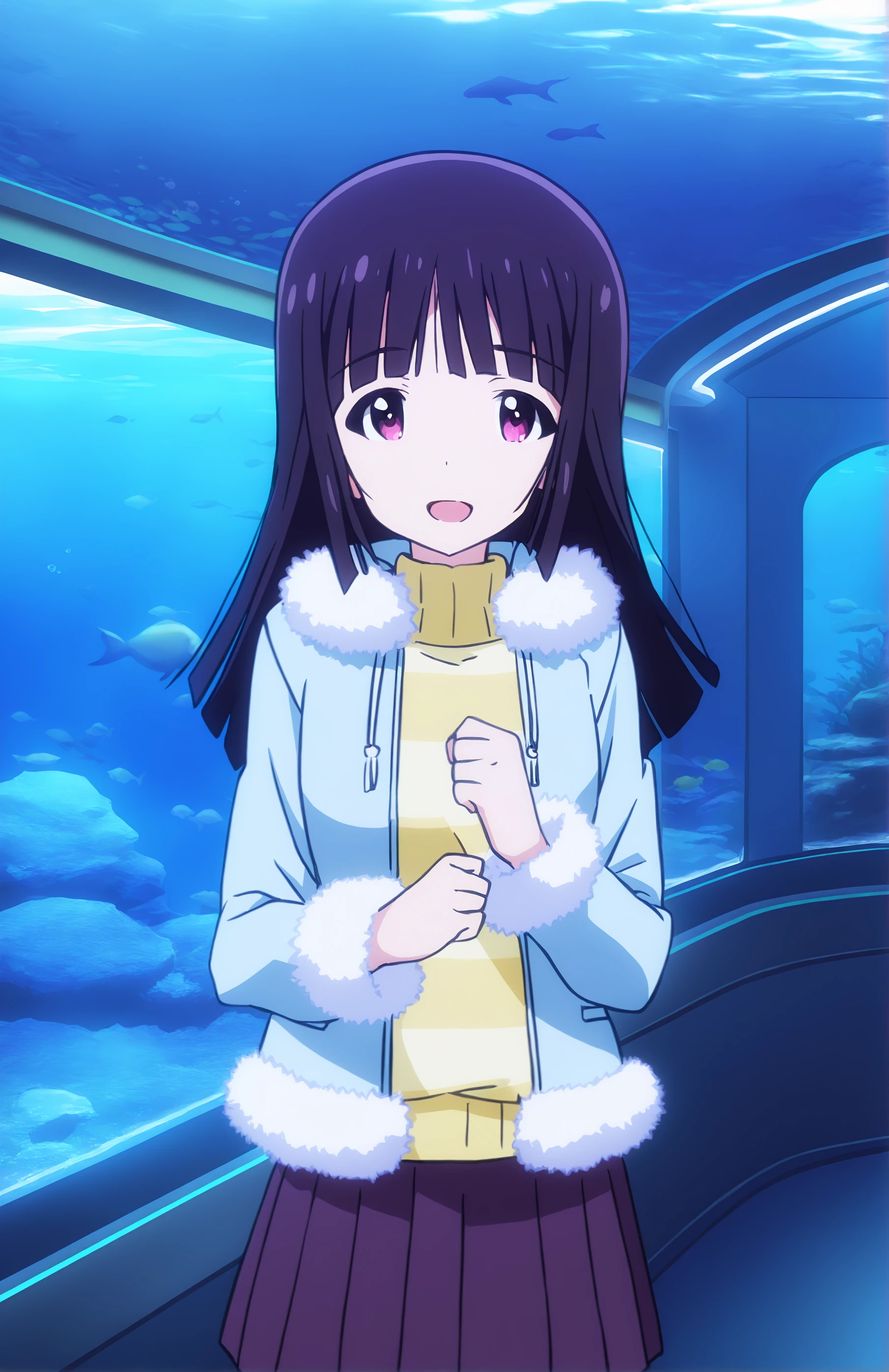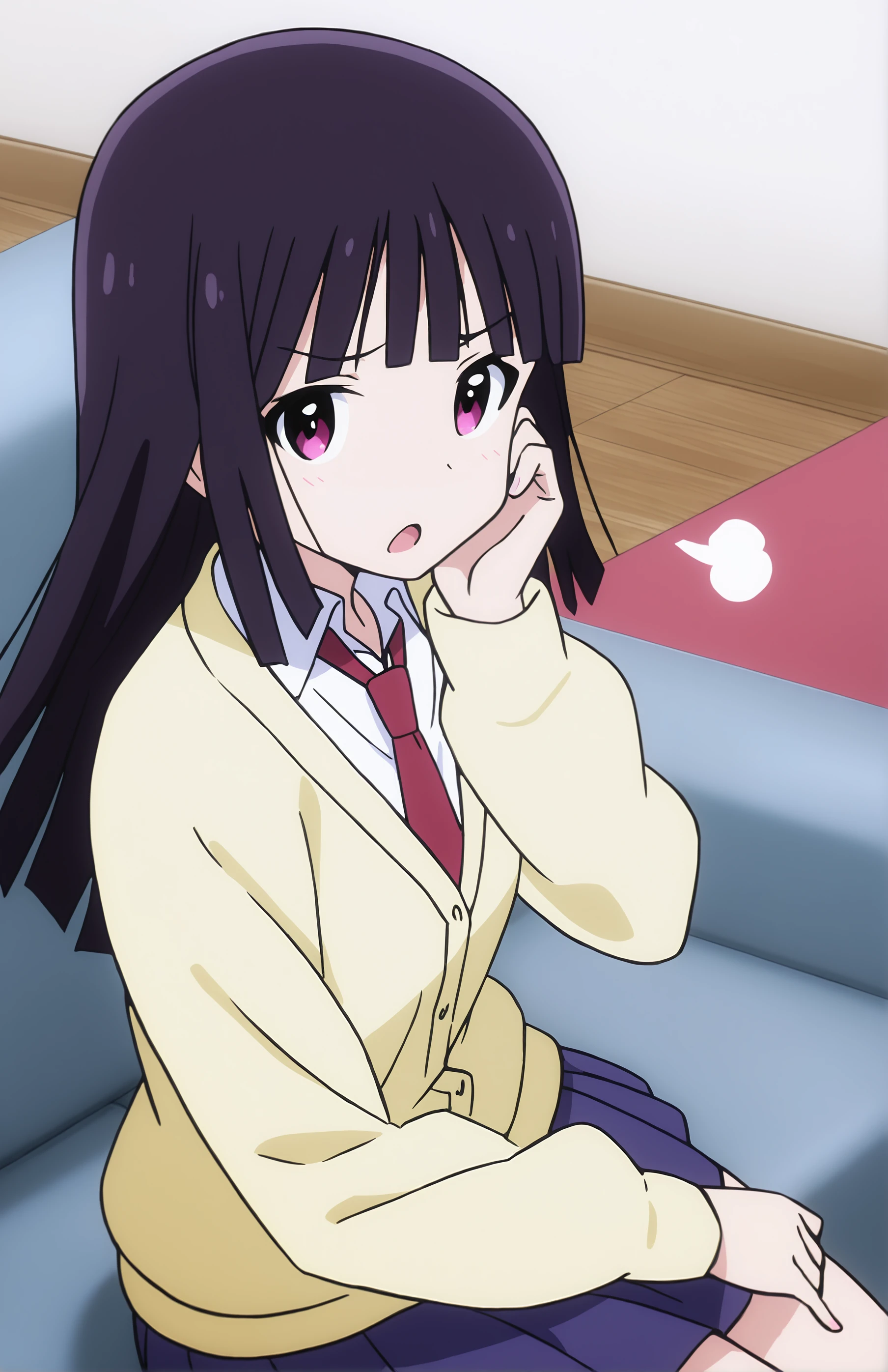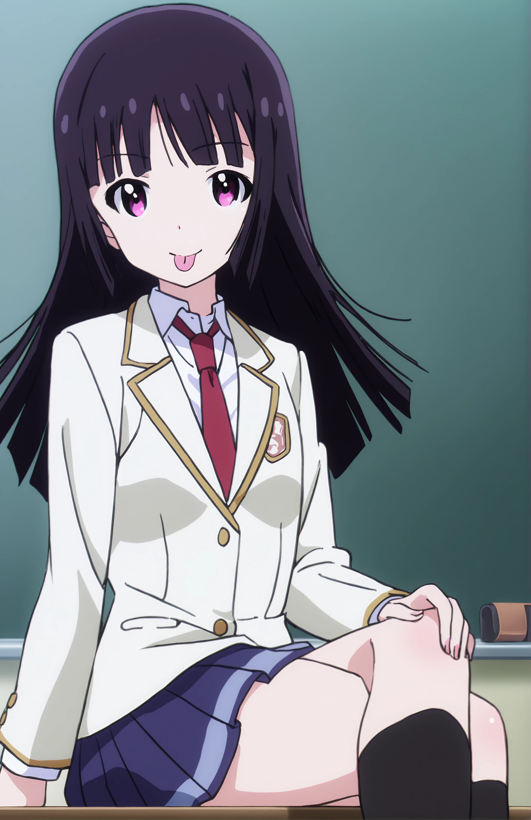Mari Matsuzawa. Recommended weight: 0.8-0.9. Trigger word: MitsukiKanzaki. Prompt for school outfit: skirt, school uniform, ivory jacket, pleated skirt, necktie, blue skirt, blazer, red necktie, collared shirt, white shirt.