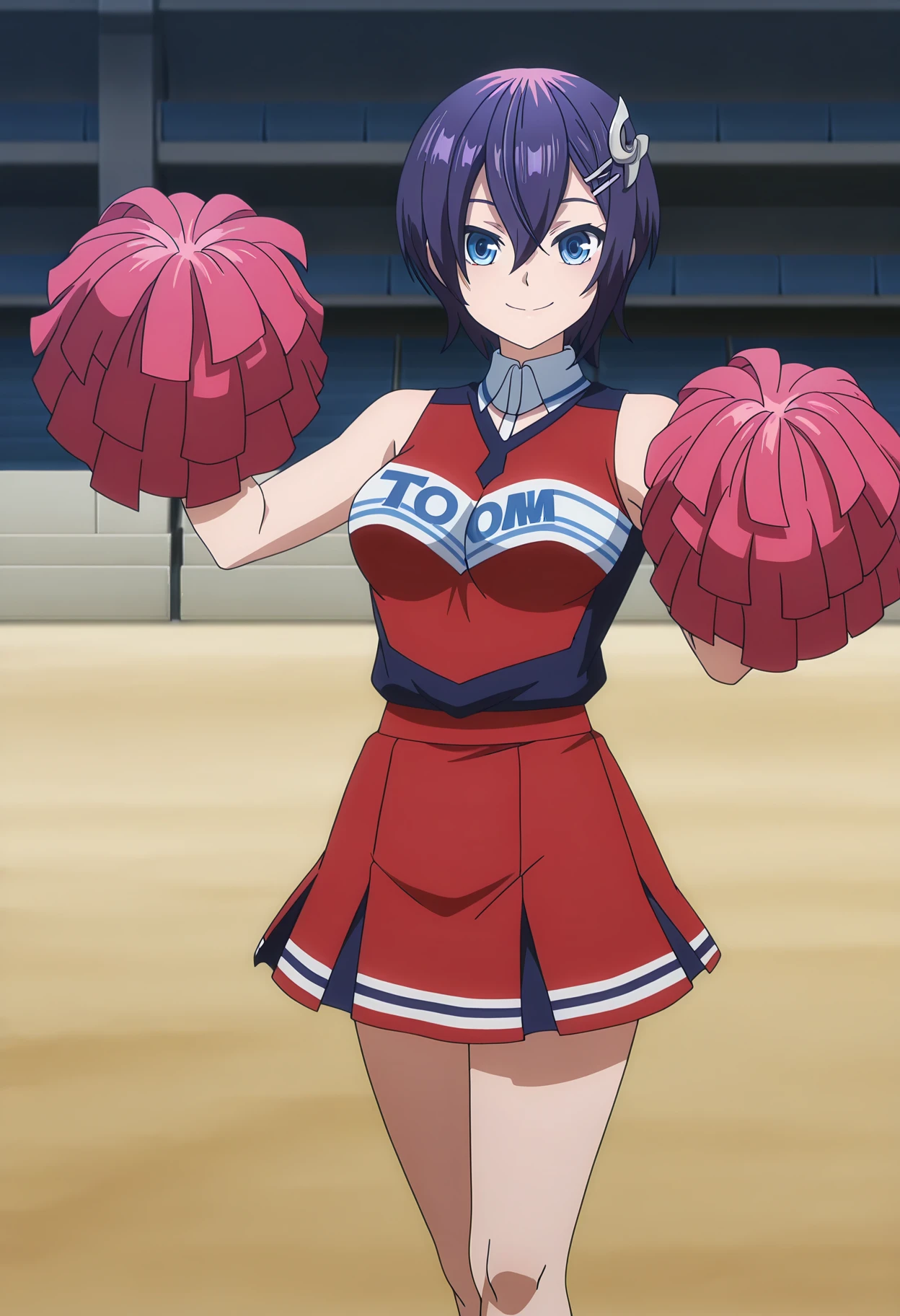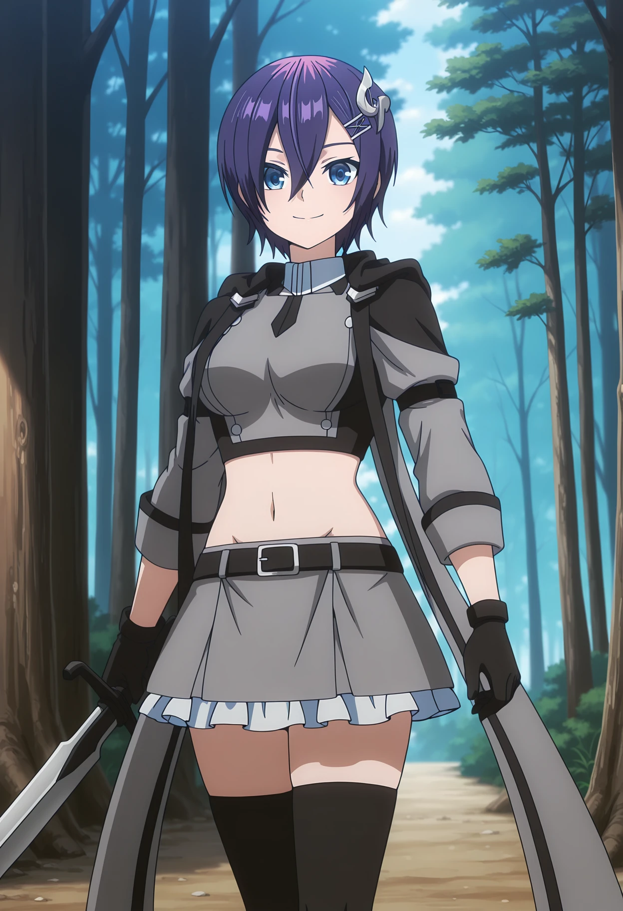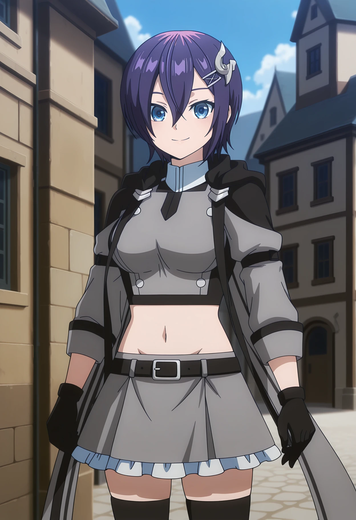 short hair, purple hair, blue eyes, medium breasts, hair ornament, hairclip, <lora:IllustriousXL Kizoku F Candidate V1:1>