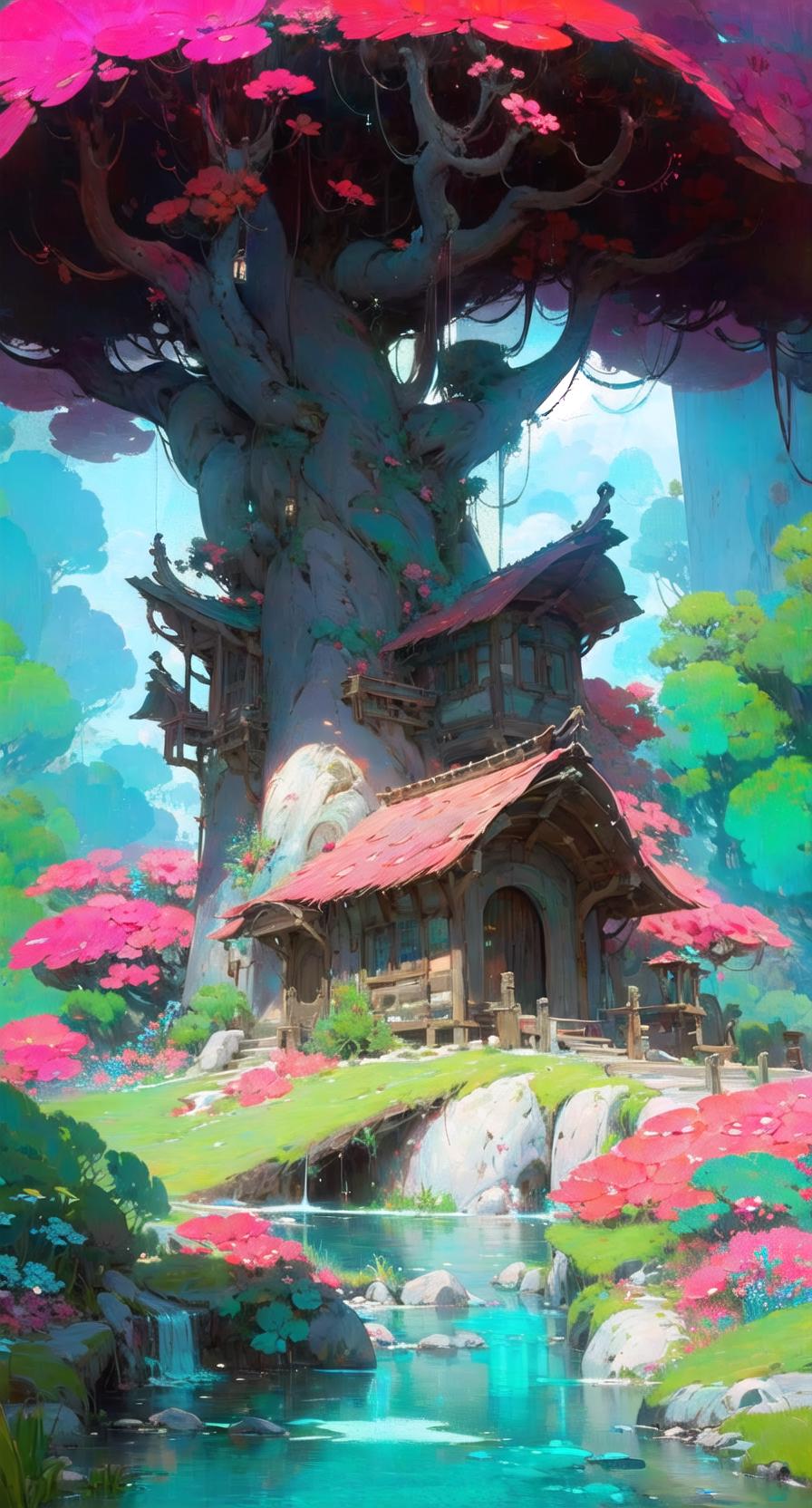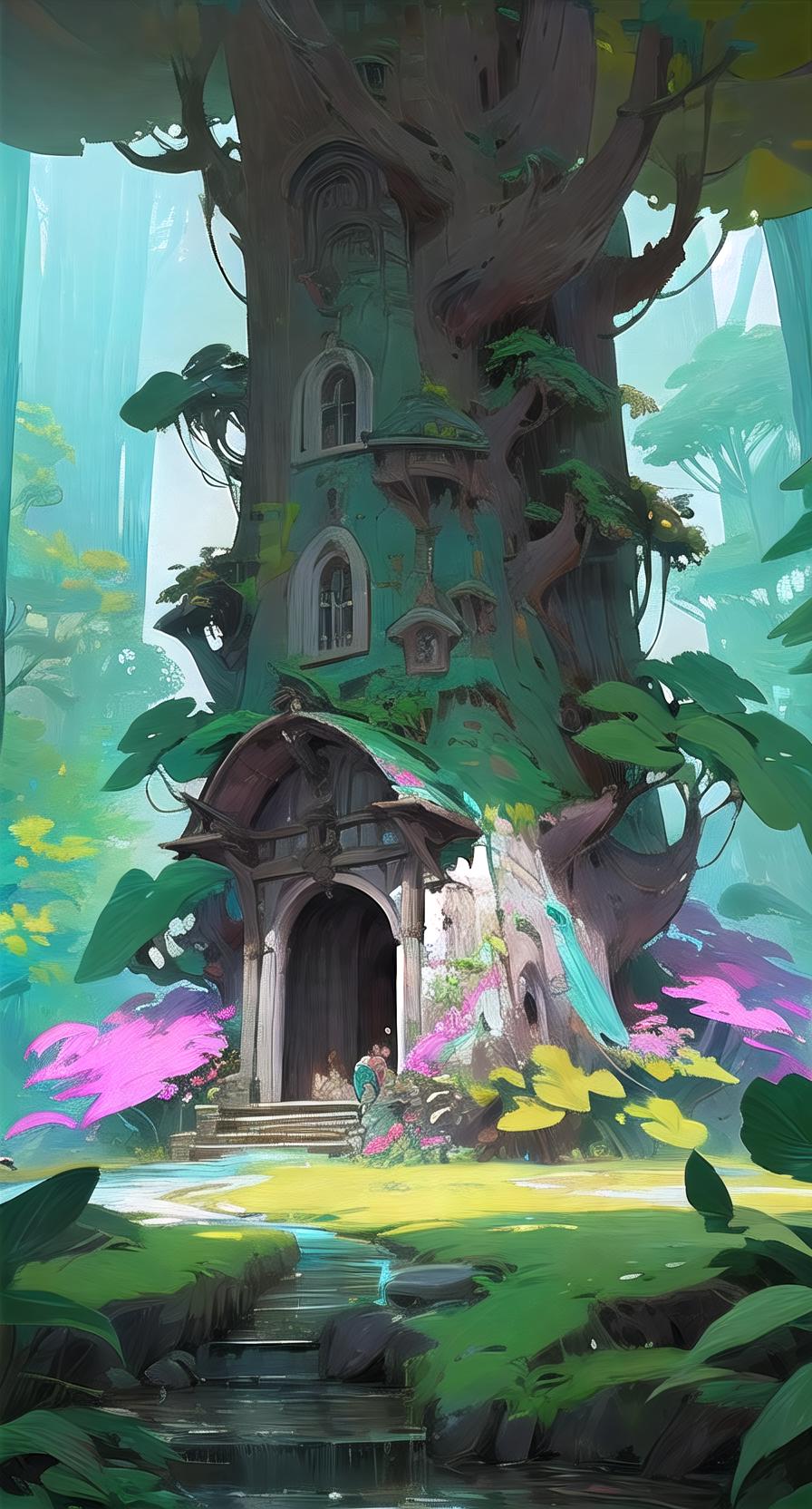This model can generate fantasy-style architecture, including tree houses, mushroom forests, towers, and more.