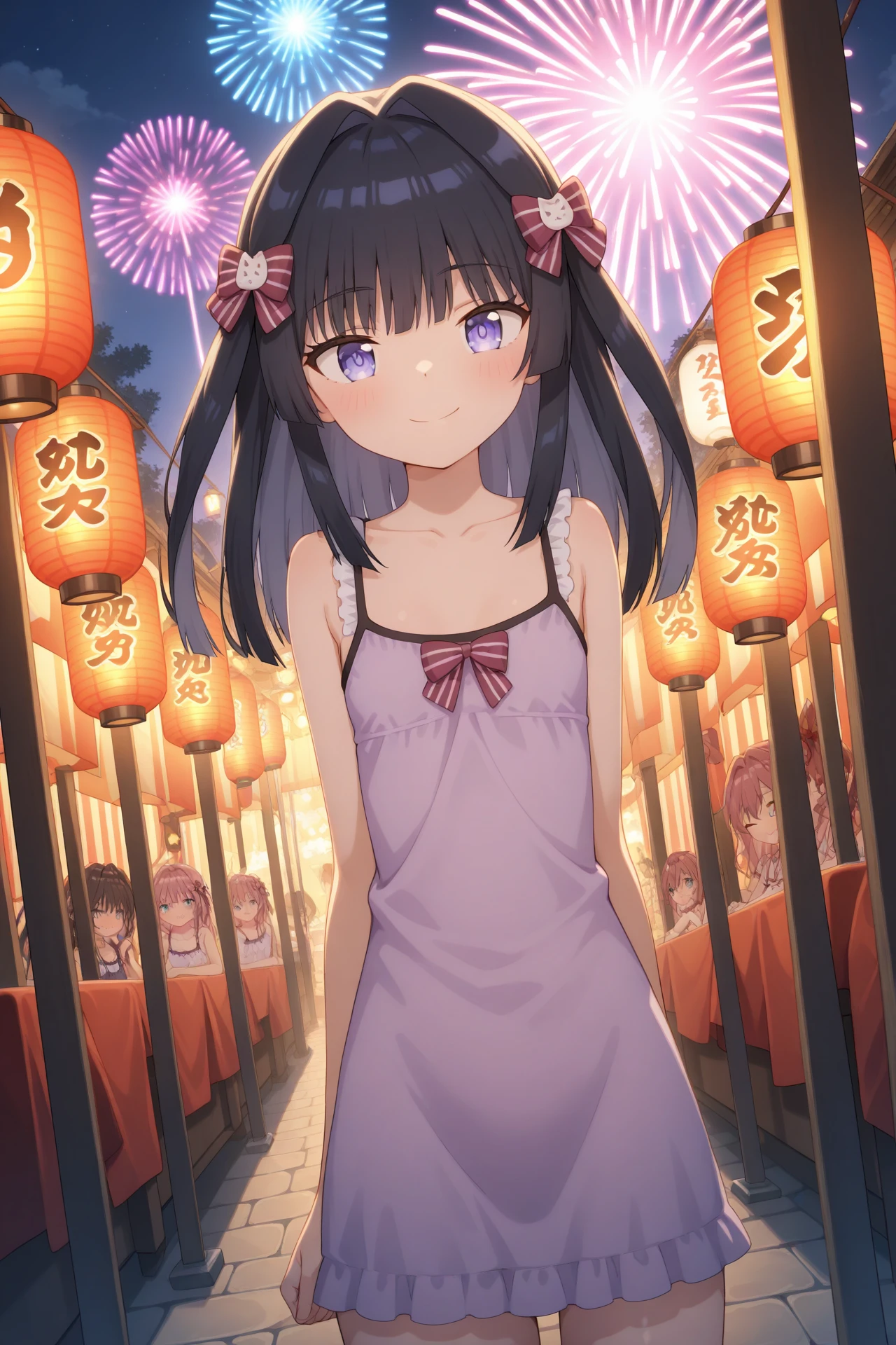 mule la more, purple eyes, black hair, long hair, two side up, hair ornamentoutfit 1: 聖ドートリッシュ 制服