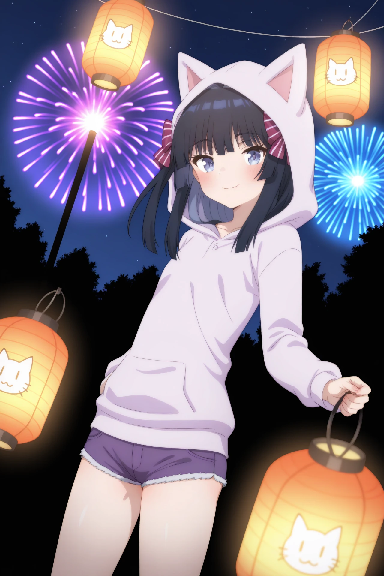 mule nightgown, purple nightgown, ribbonoutfit 4: 猫耳パーカ
