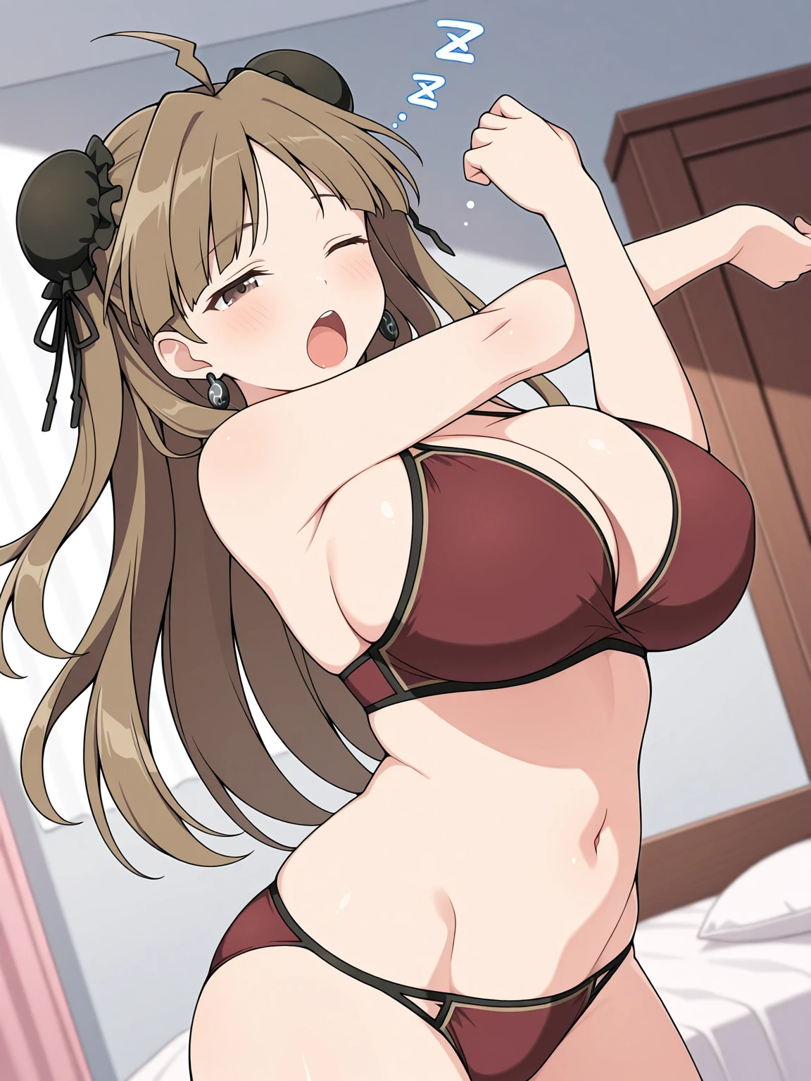 Trigger Words for her swimsuit are "Renka_Swim, brown bikini, brown bra, brown panties".