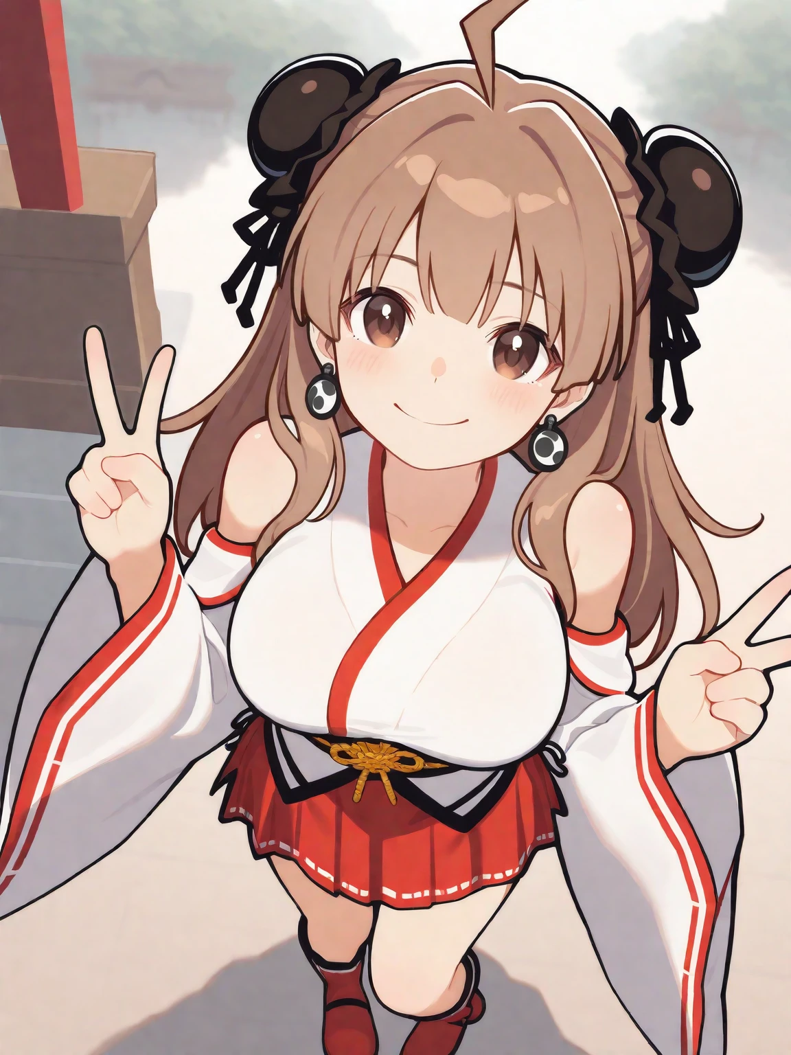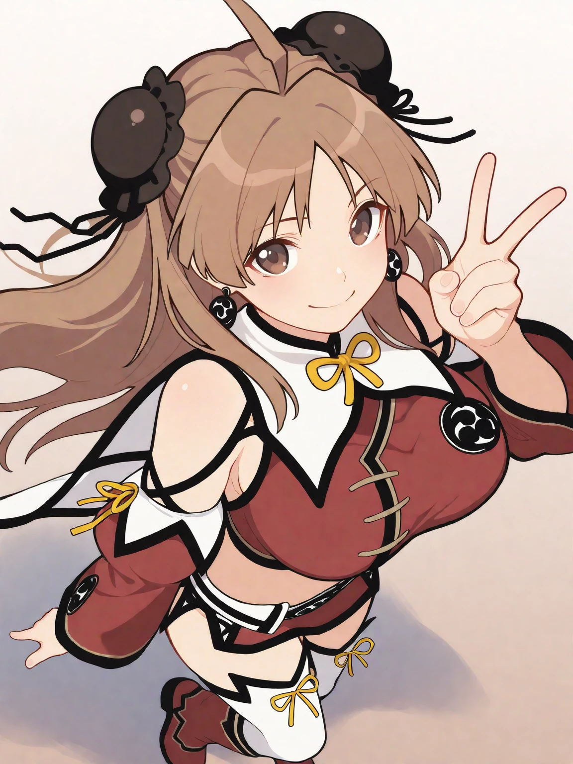 Trigger Word for the LoRA are "Renka_IL, brown eyes, long brown hair, ahoge, double bun, bun cover, hair ribbon, large breasts".