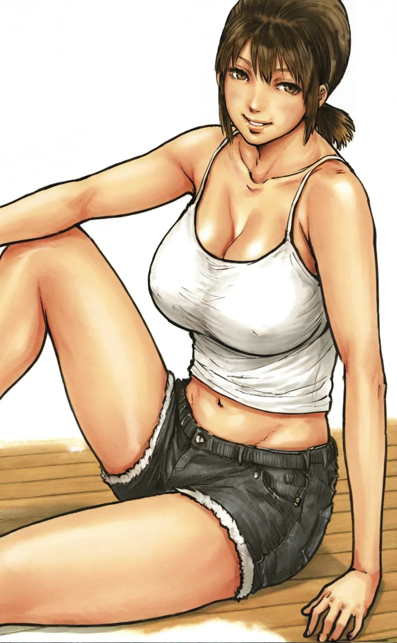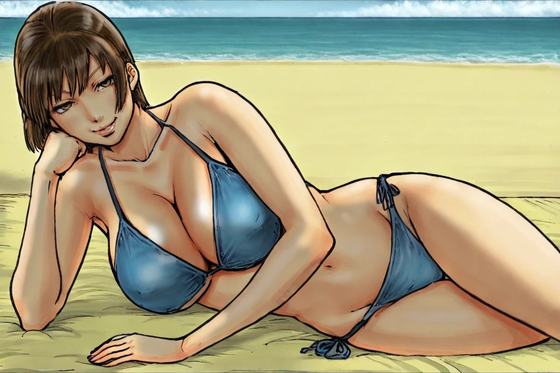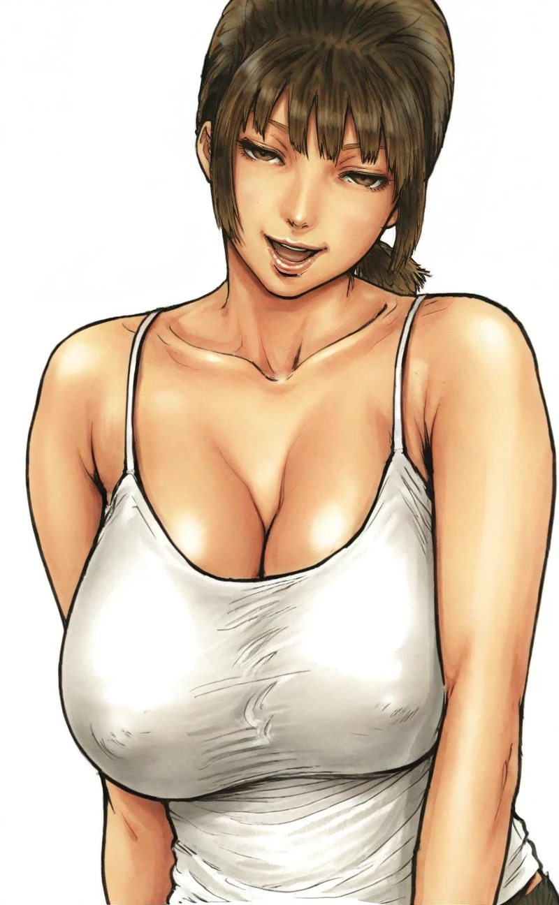 katano, (huge breasts:0.8), short hair, brown hair, brown eyes, mature female, traditional_media,