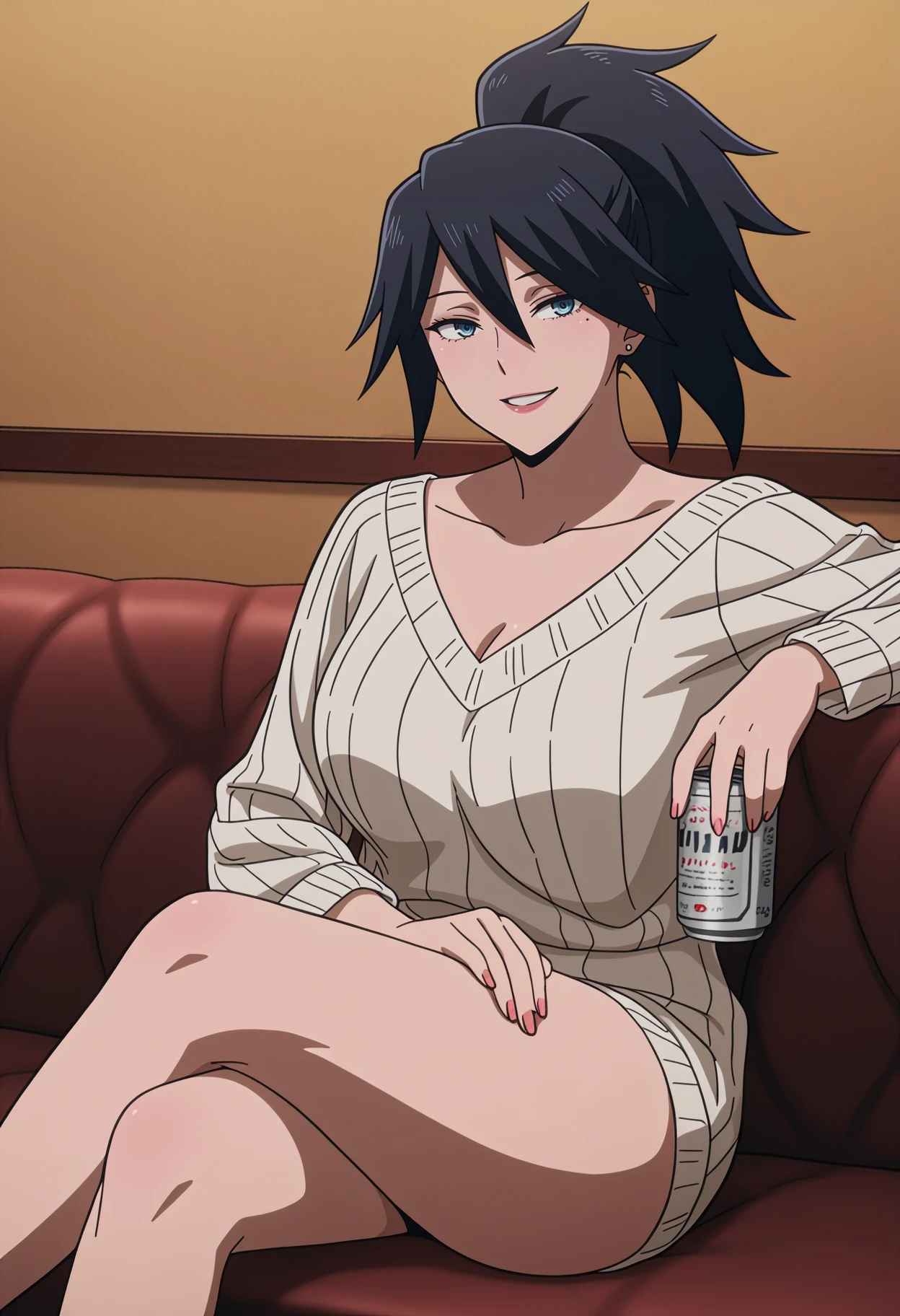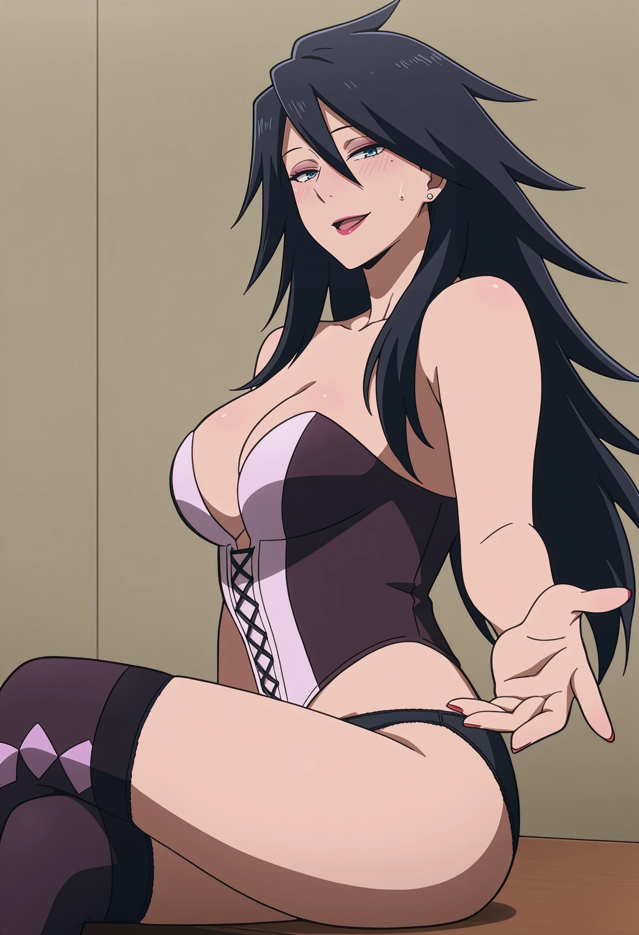 1girl,solo,anime coloring,mm,mature female,long hair,black hair,makeup,mole under eye,blue eyes,earrings