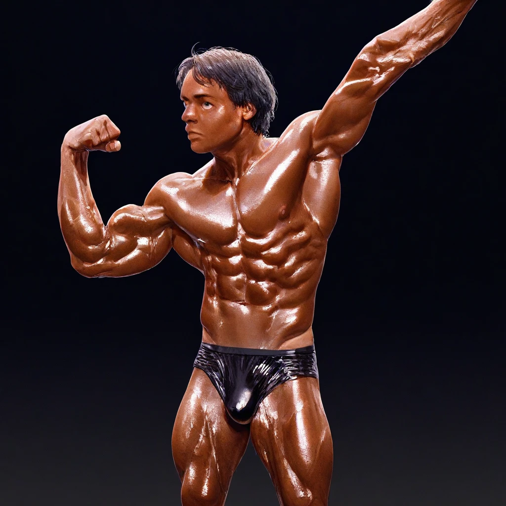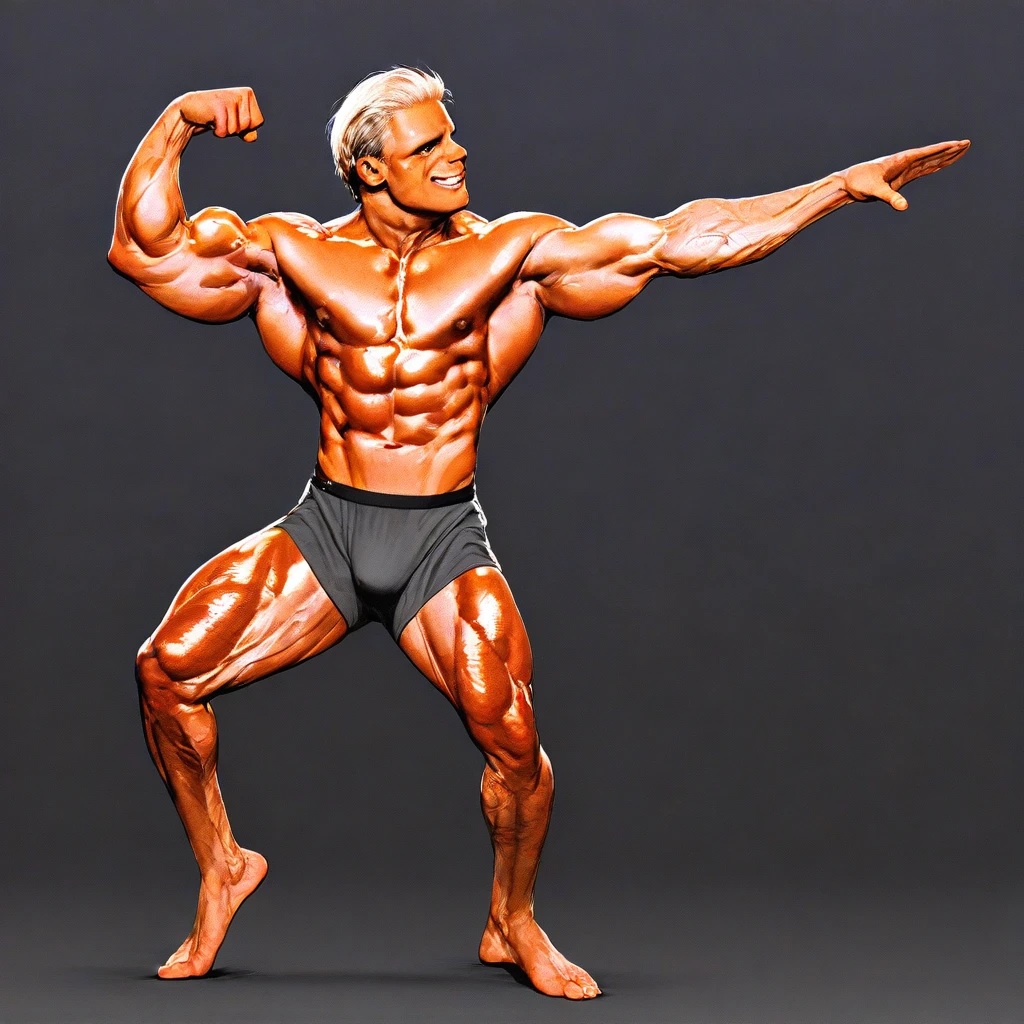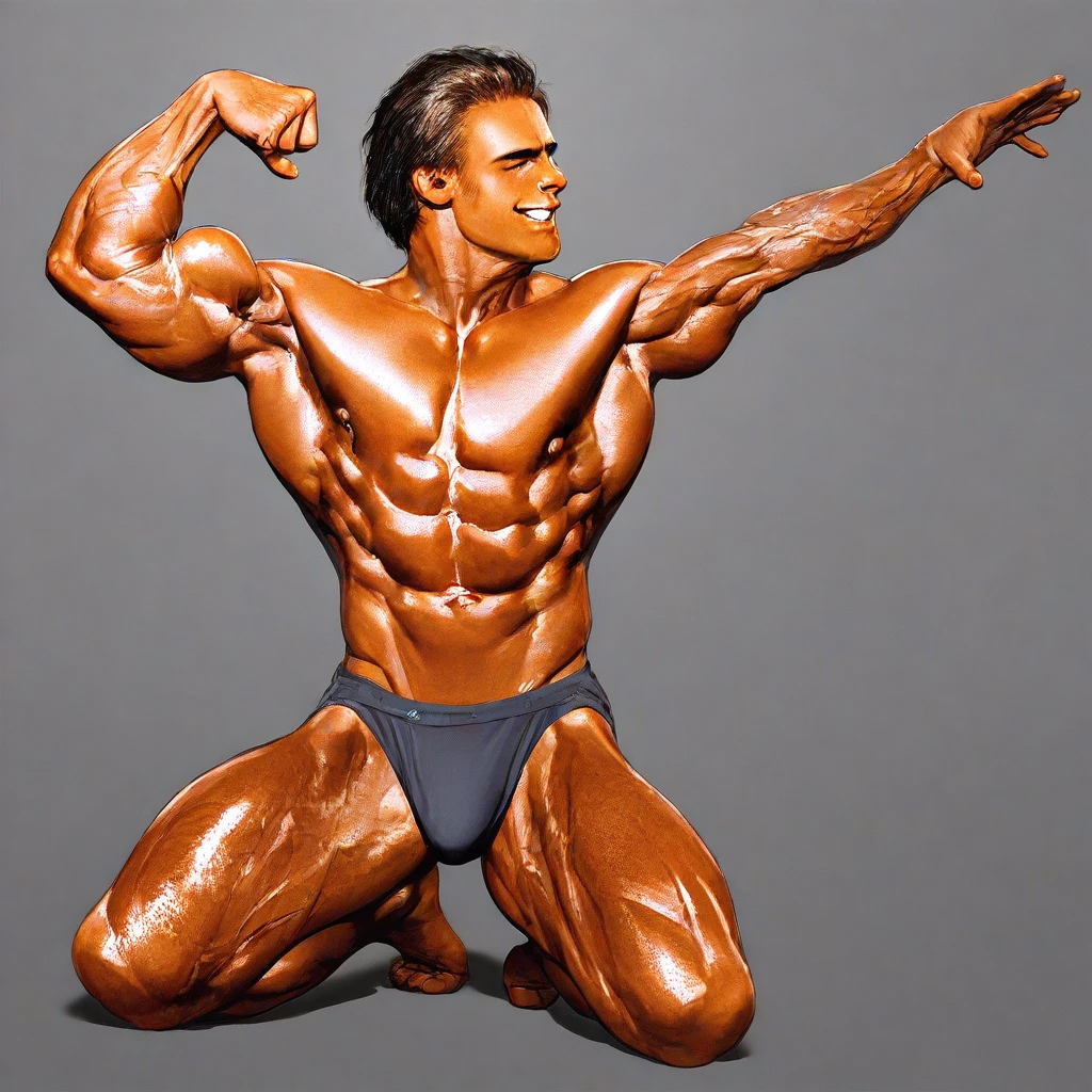 Archer Pose, one arm flexed, one arm extended, bodybuilder