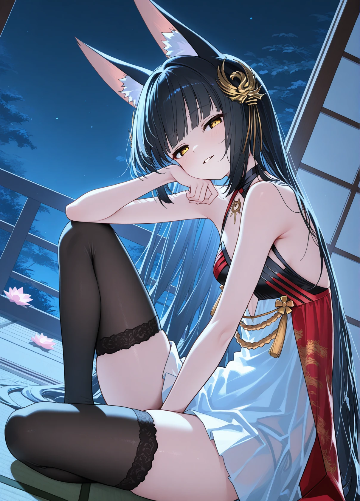 nagato \(guardian fox's blessed bonds\) \(azur lane\),hair ornament,china dress,white pantyhose,