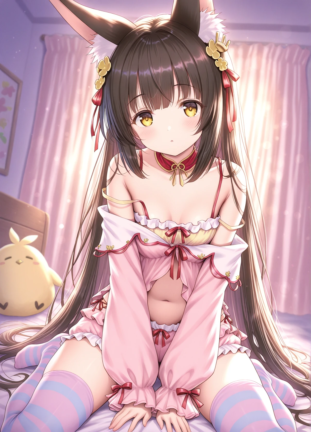 nagato \(guardian fox's vacation\) \(azur lane\),hair ornament, pajamas,striped thighhighs,