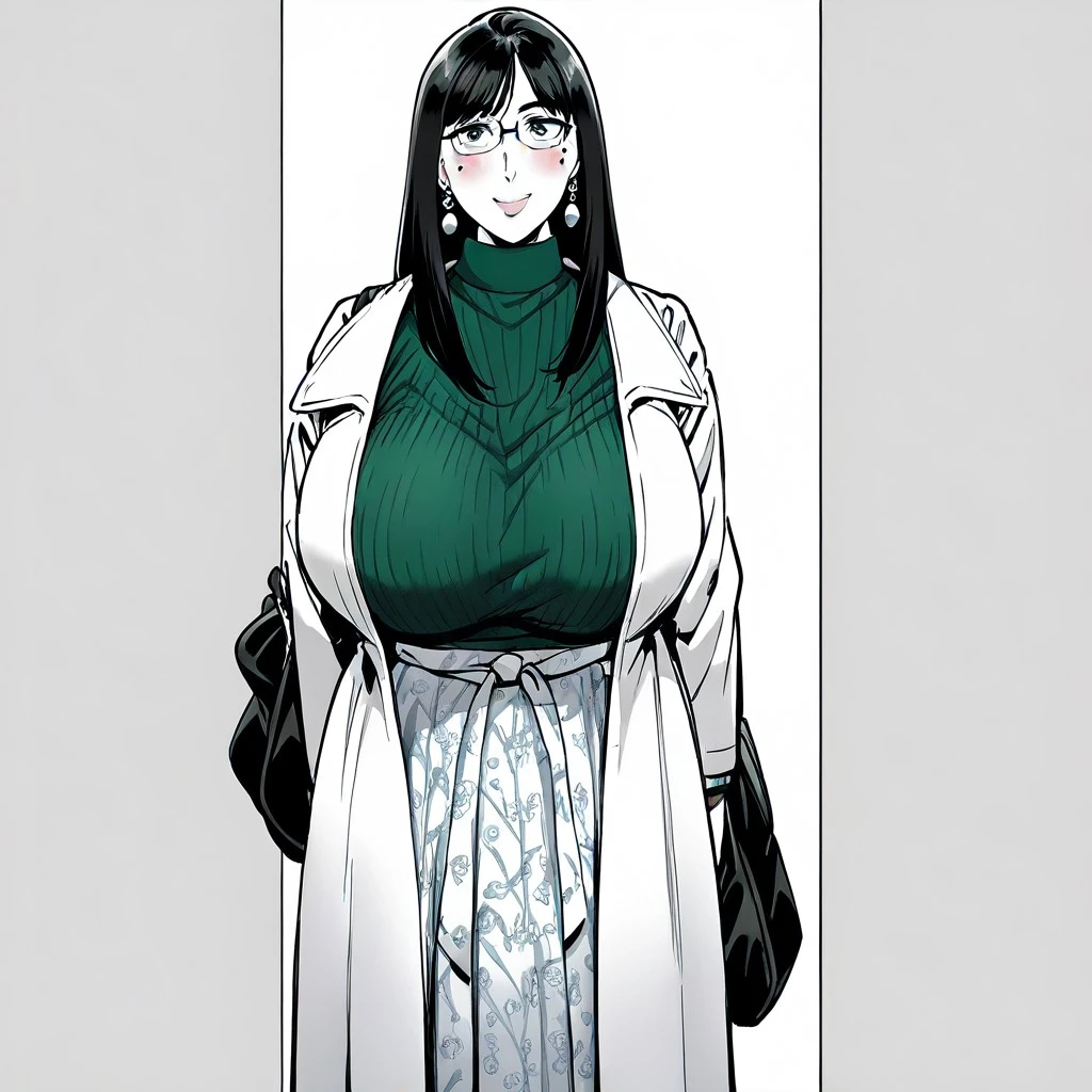 1 girl, solo mature, black hair, breasts, chubby, straight hair, medium hair